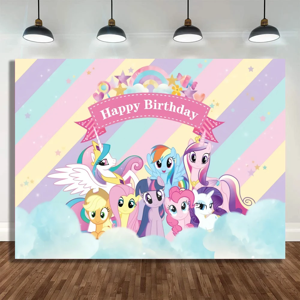Радужный Красочный Полосатый день рождения девочка принцесса фон мой маленький пони Единорог облака Новорожденный ребенок душ фон