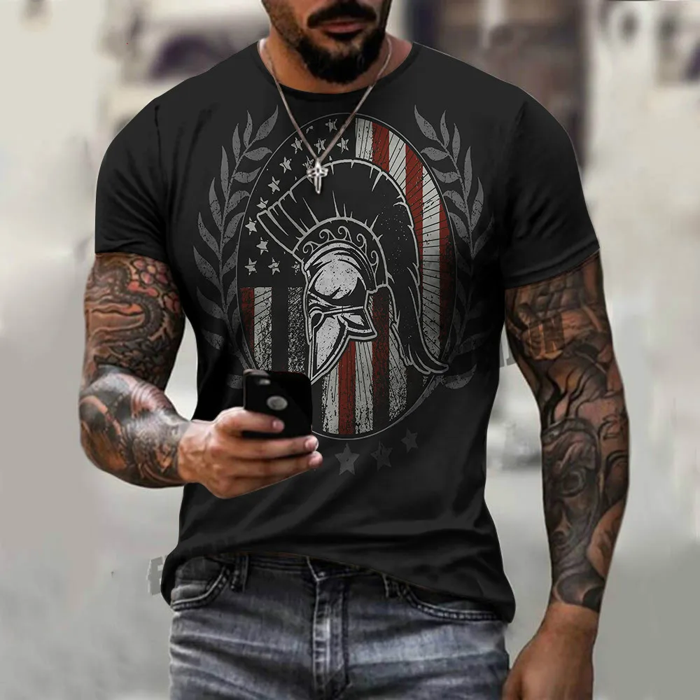 Футболка мужская с 3D принтом, спартанская ретро одежда, уличный ст...