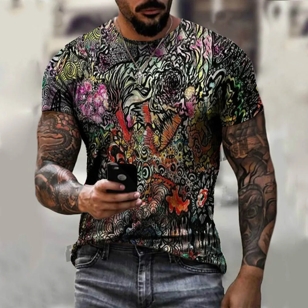 Новинка 2021, Мужская футболка с 3D-принтом в стиле тату, летний По...