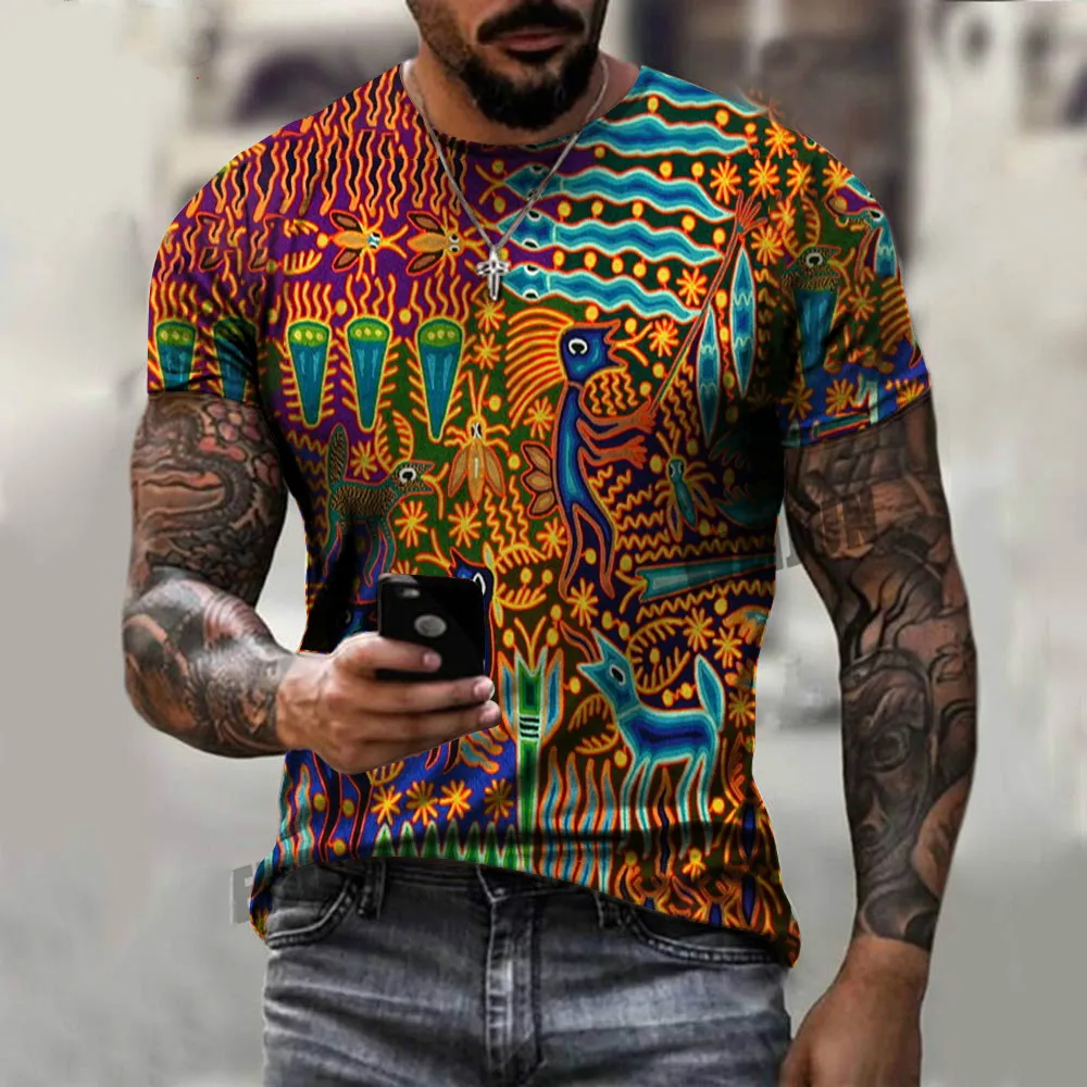 Футболка мужская с круглым вырезом, Этническая одежда в стиле ретро...