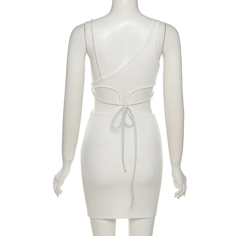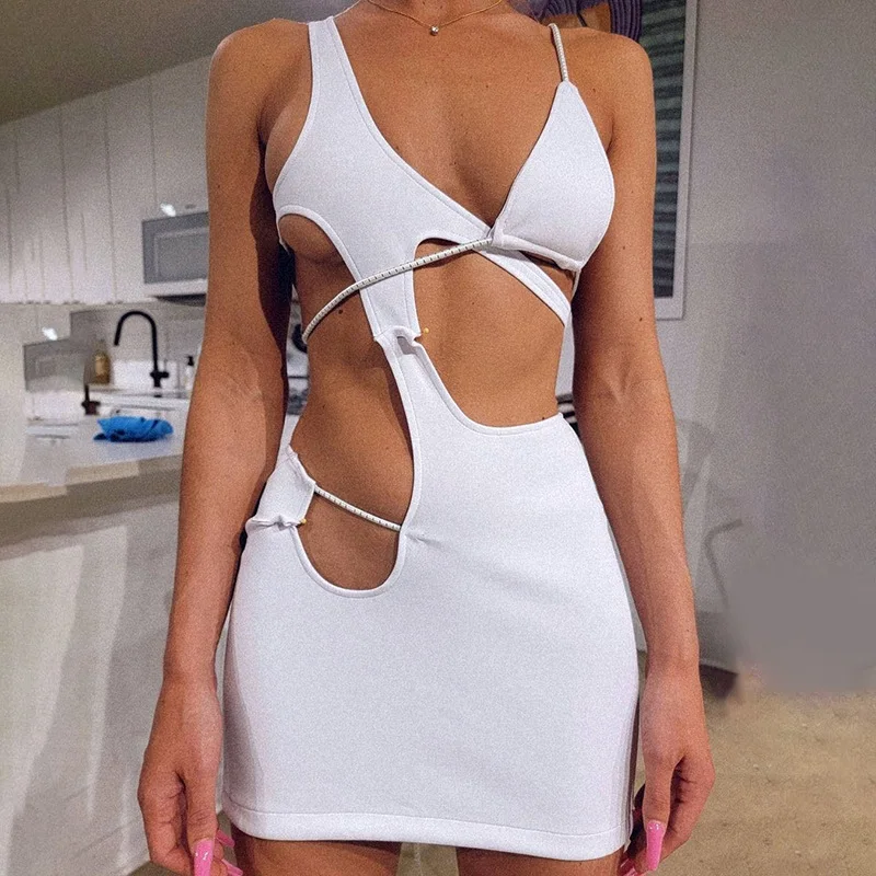 Элегантное облегающее Бандажное платье для женщин 2021, вечерние сексуальные Клубные наряды, белое платье с открытой спиной и коротким вырезом на бретелях