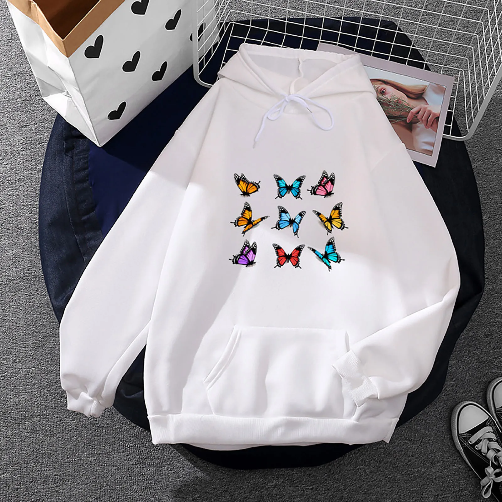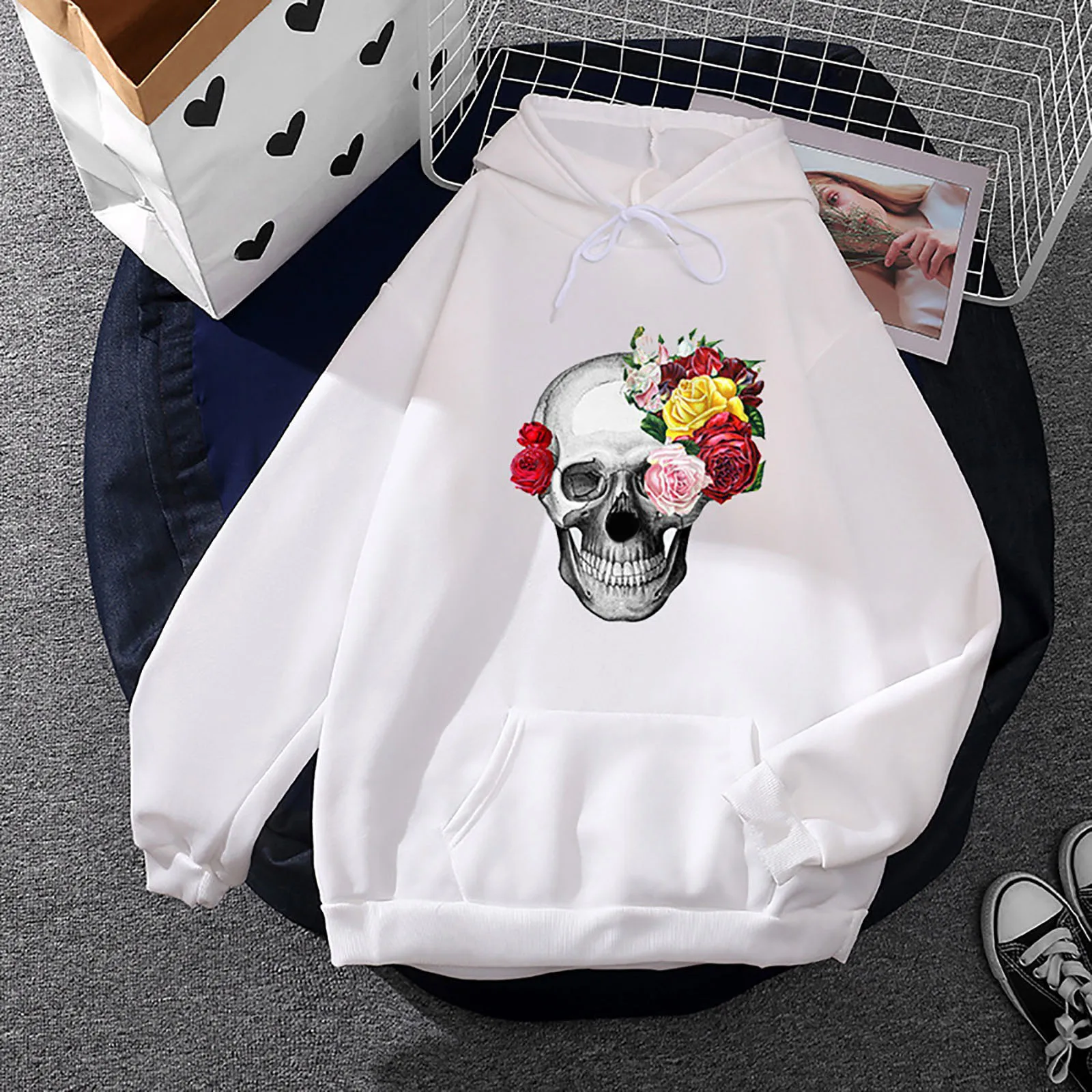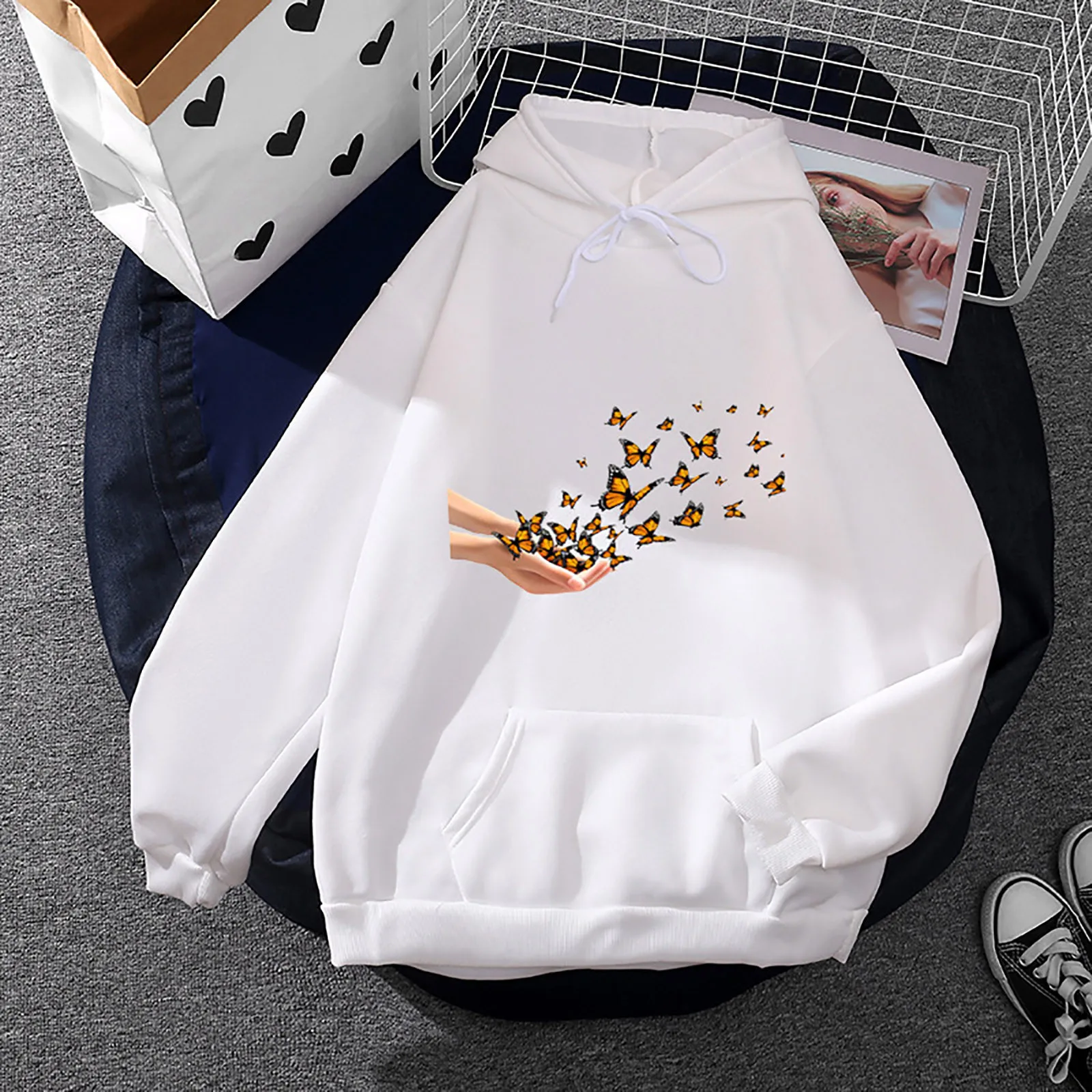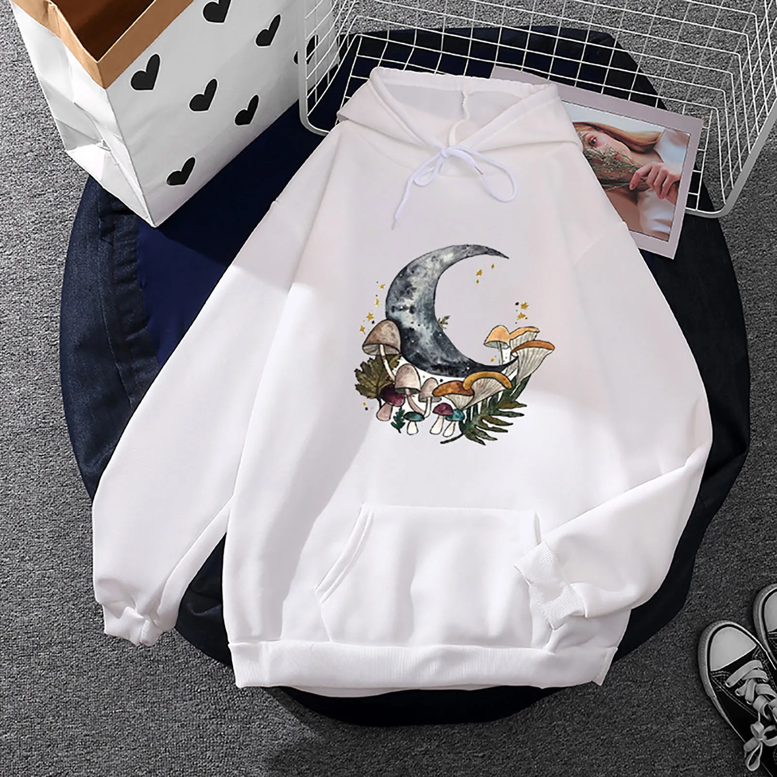 Женская толстовка с капюшоном с принтом в виде грибов, повседневный Свободный пуловер с круглым вырезом и карманами, Осенние блузки, белые топы, туника, толстовки