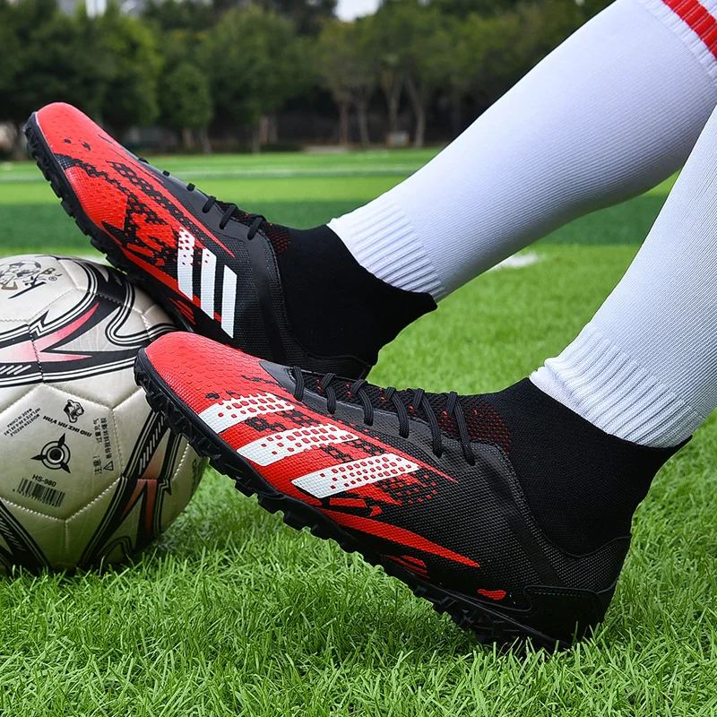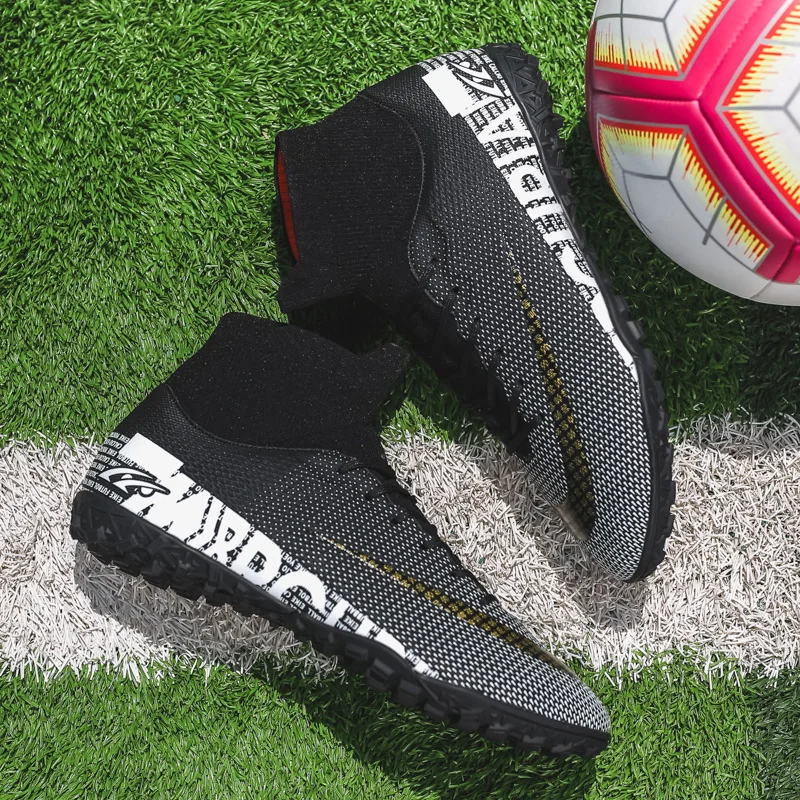 Мужская футбольная обувь 2021, черные Детские тренировочные футбольные бутсы, высокие спортивные кроссовки до щиколотки, размер 35-45