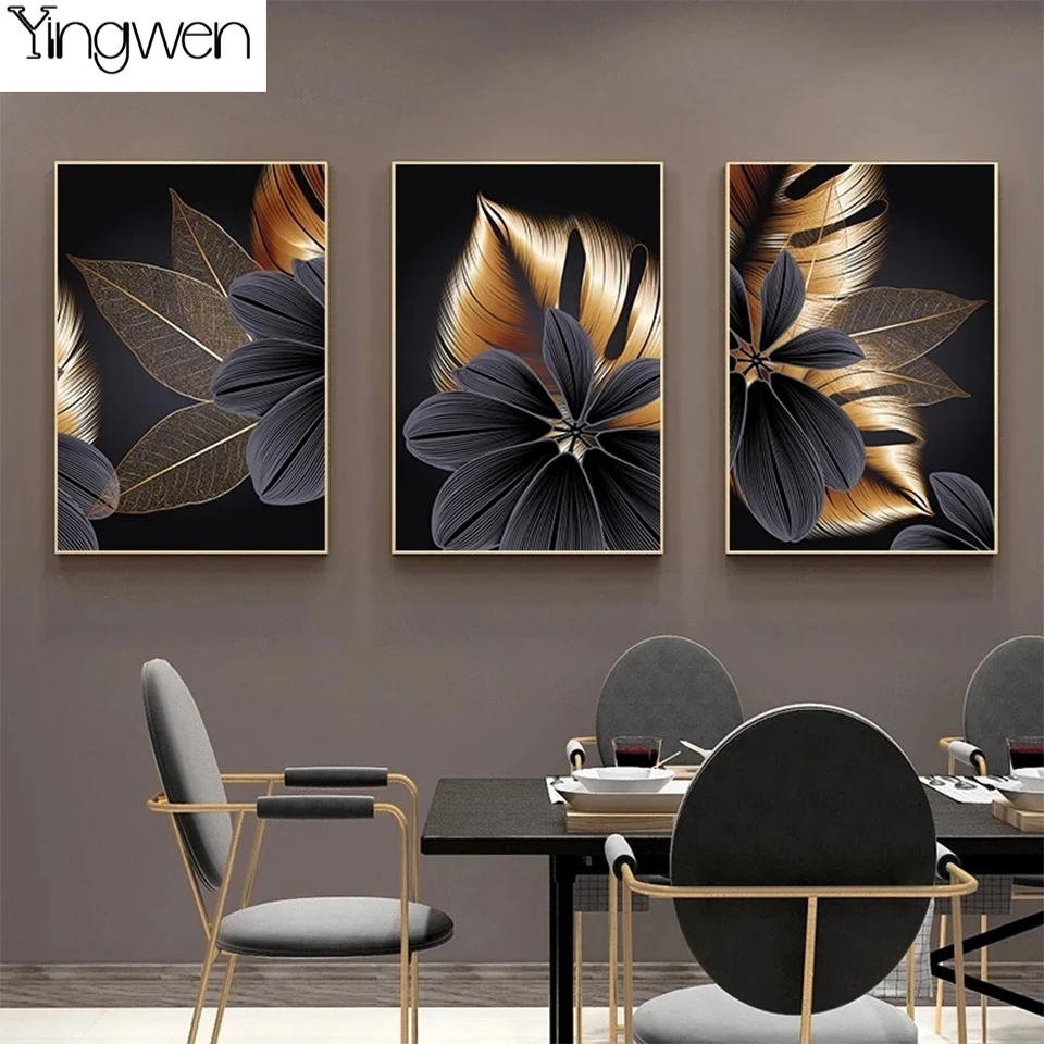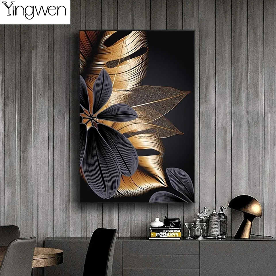 Алмазная живопись "сделай сам" в стиле ретро, Черное золото, листья, наборы для вышивки крестиком, картина 5D, мозаика, украшение для дома