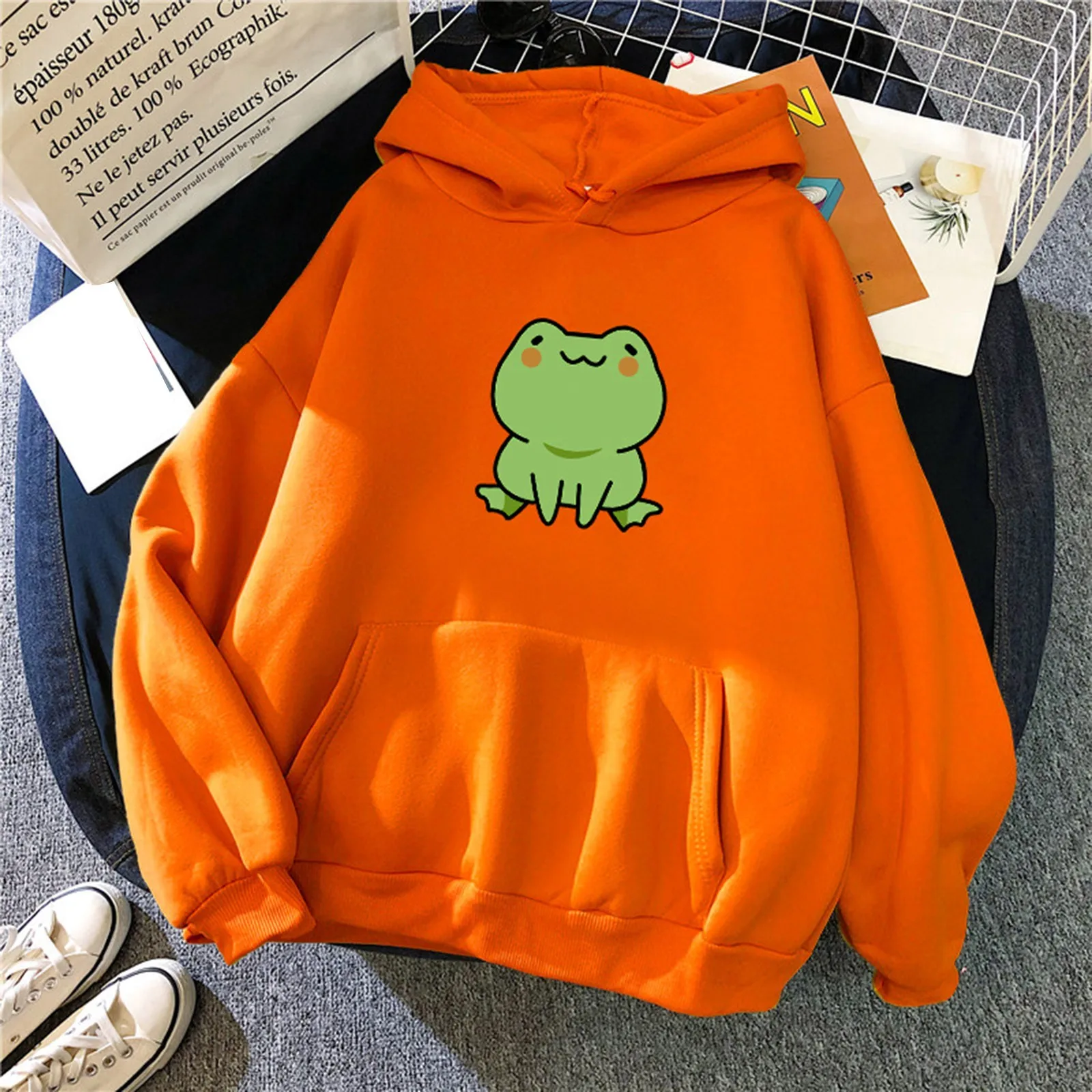 Женская толстовка в стиле Харадзюку, пуловер в виде лягушки, модная новинка, милый бархатный свитшот с длинным рукавом и капюшоном, топ, кавайная одежда
