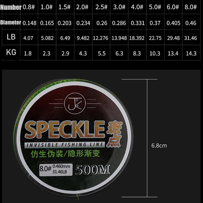 Леска для рыбной ловли 3D из моноволокна: опираясь на исследования и разработки с точки зрения бионики, с 3d-невидимостью, замаскированной под планктон в природе, эта леска значительно снижает бдительность рыб.Обесцвечивающая леска с пятнами: бионические камуфляжные пятна для облегчения рыбалки. Цвет лески варьируется в зависимости от окружающей среды: зеленый на темном фоне и коричневый на ярком фонеСуперпрочность: суперпрочность для уверенности и контроля, отличное растяжение и прочность узлов, низкая памятьСверхчувствительность: сверхчувствительность для обнаружения укусов света, быстрое погружение для более естественного изображения.1. Прочнее, гладче, гибче для легкого заброса.2. Бионический нейлоновый дизайн незаметен под водой.3. Отличное сопротивление растяжению и прочность узлов.4. Превосходная влажная прочность и устойчивость к истиранию5. Сверхнизкий объем памяти