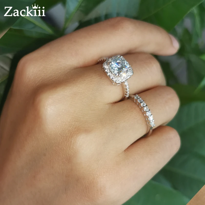 Женский комплект колец из серебра 2 шт., обручальное кольцо с муасс...
