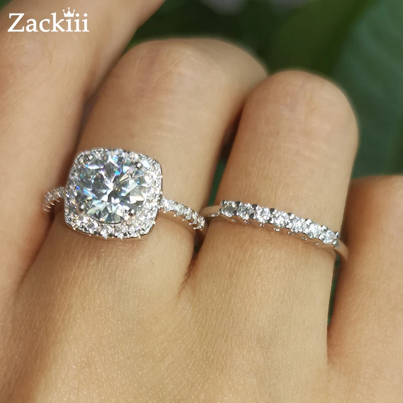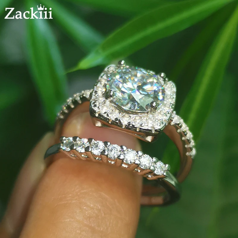 Настоящий муассанит обручальное кольцо Набор 925 стерлингового серебра обручальные кольца для женщин, Круглые бриллианты свадебные ювелирные наборы