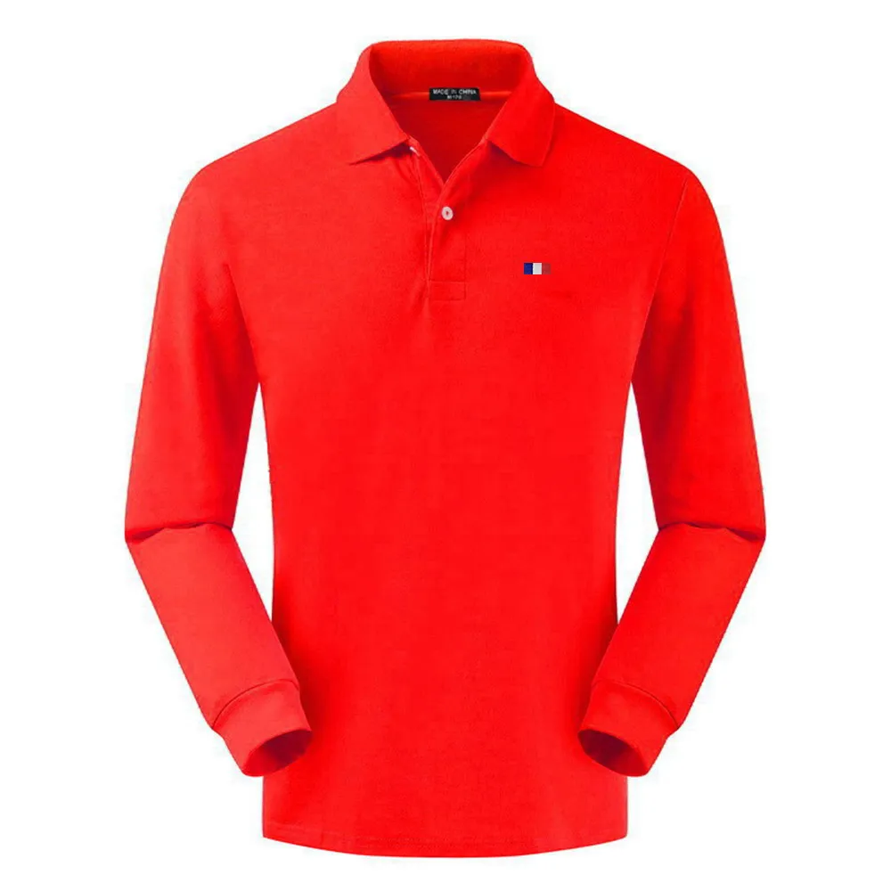Рубашка-поло мужская с длинным рукавом, 100% хлопок, весна-осень
