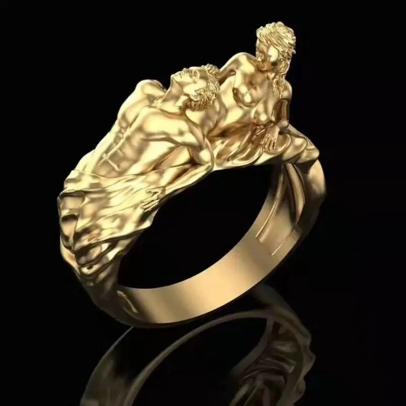 Модные резные медные фигурки Adam and Eve, кольца для женщин, Золот...