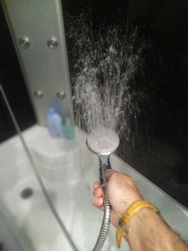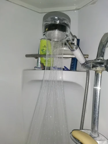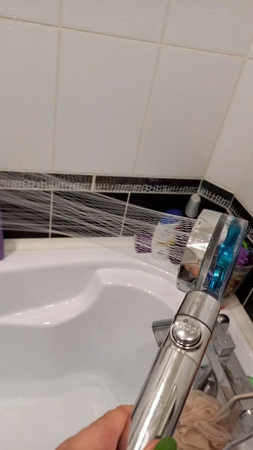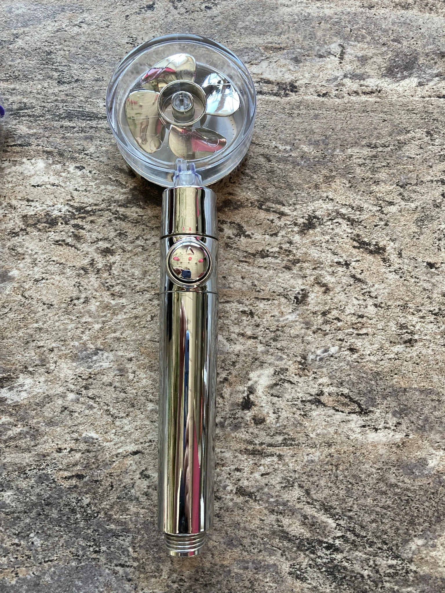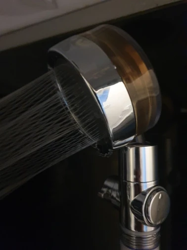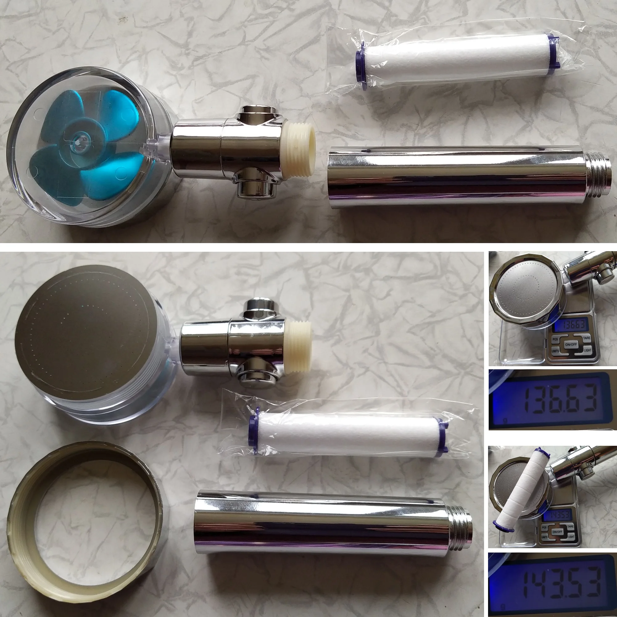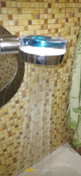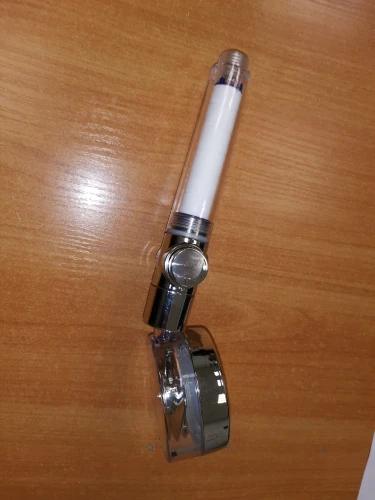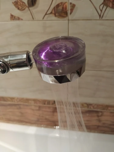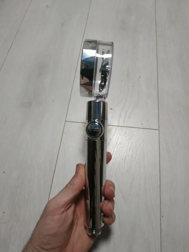 Душ супер. Тонкие струйки не делают особого массажа тела, но по крайней мере выглядят красиво. Пропеллер внутри крутится и немножко шумит. Головка у душа может немного наклоняться, внутри шарнир, но ничего в этом месте не протекает. Есть кнопка, чтобы перекрыть воду, но мне её назначение непонятно, ведь напор воды продолжает поступать, на кран не переключается. Сама лейка достаточно тяжёлая, чтоб не перевернуться от напора воды, если её положить. Из недостатков: прозрачная пластиковая часть пришла вся в царапинах и замызганная, хотя упаковано было хорошо; после выключения душа вода остаётся внутри лейки и вокруг пропеллера и очень долго уходит обратно, тихо похлюпывая; из-за тонких струй образуется водяной пар, который брызгая холодит, и от этого кажется, как будто откуда-то дует (но это не пропеллер). :) Несмотря на это 5 баллов, товар и продавца рекомендую!