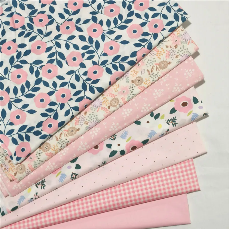Розовая Цветочная клетчатая ткань, хлопковая саржевая ткань, хлопковое постельное белье, ручная работа, искусственная кожа