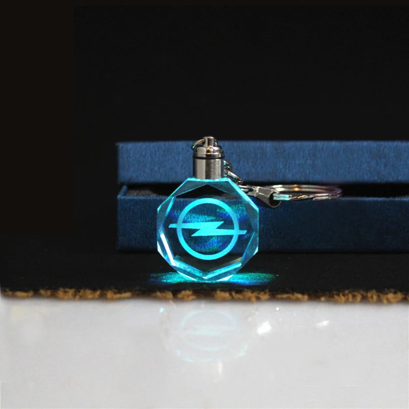 Креативный 3d-брелок из стекла, металлический многоцветный светильник для OPEL, значок для стайлинга автомобиля, автомобильные аксессуары, мужские деловые подарки, брелки