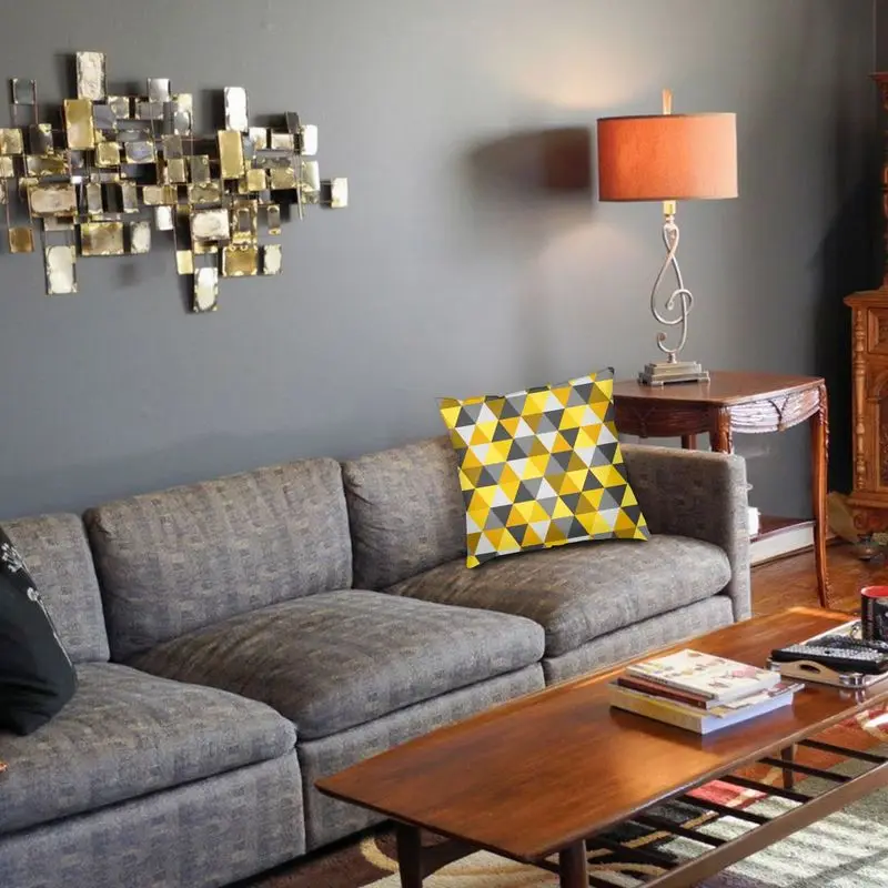 Модная наволочка с геометрическим рисунком серого и горчичного цвета, домашний декоративный двухсторонний чехол с 3D рисунком лимона и желтого цвета для дивана