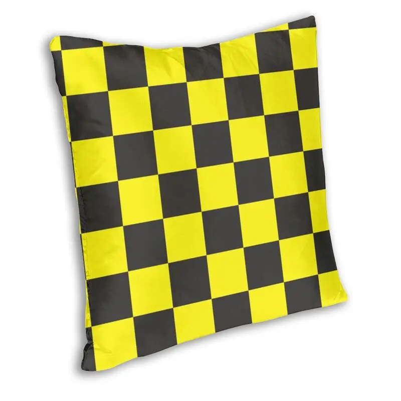 Наволочка для подушки, квадратная, в черно-желтую клетку, с 3D-принтом, для гостиной