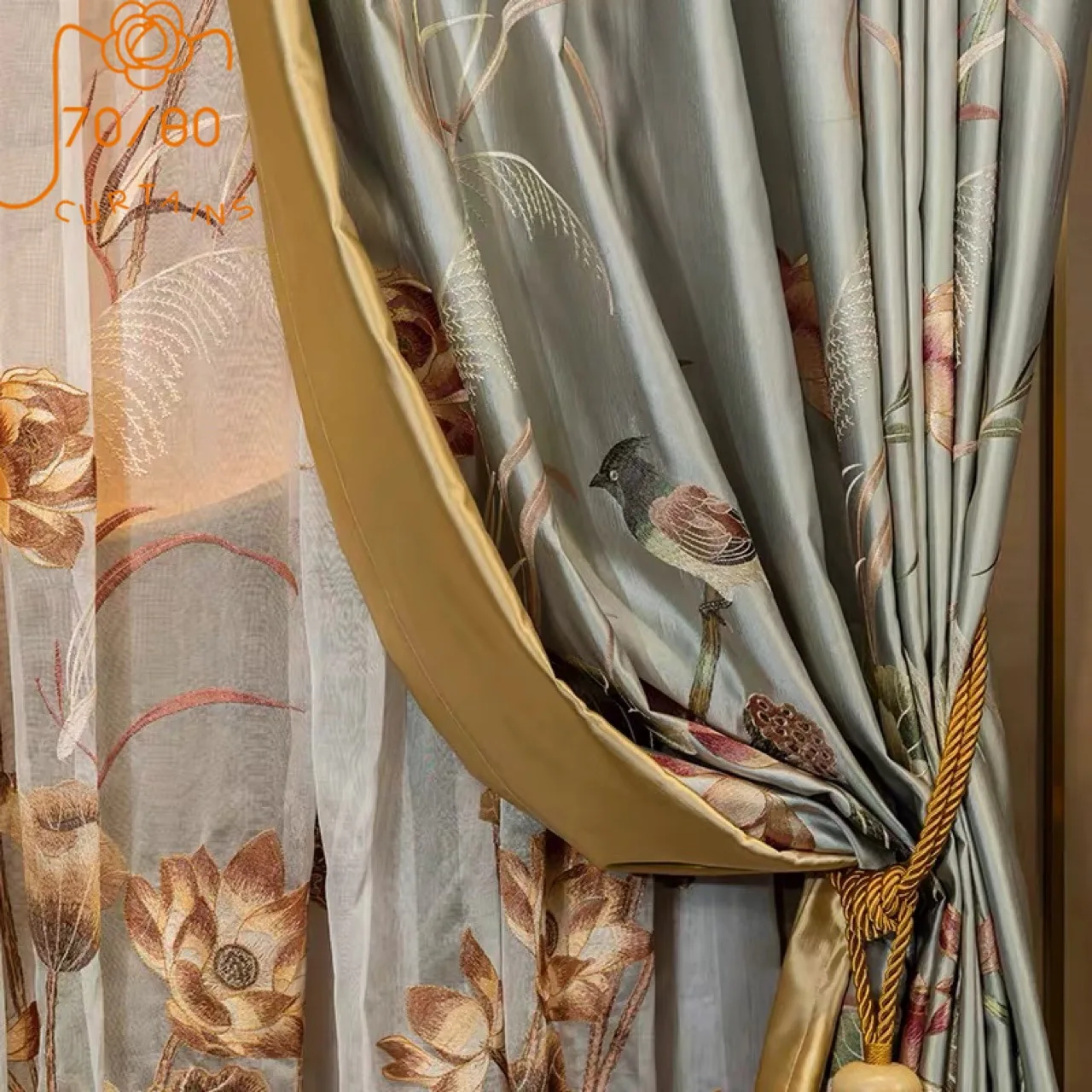 Европейские шторы с вышивкой, роскошные шторы с атмосферным затенен...