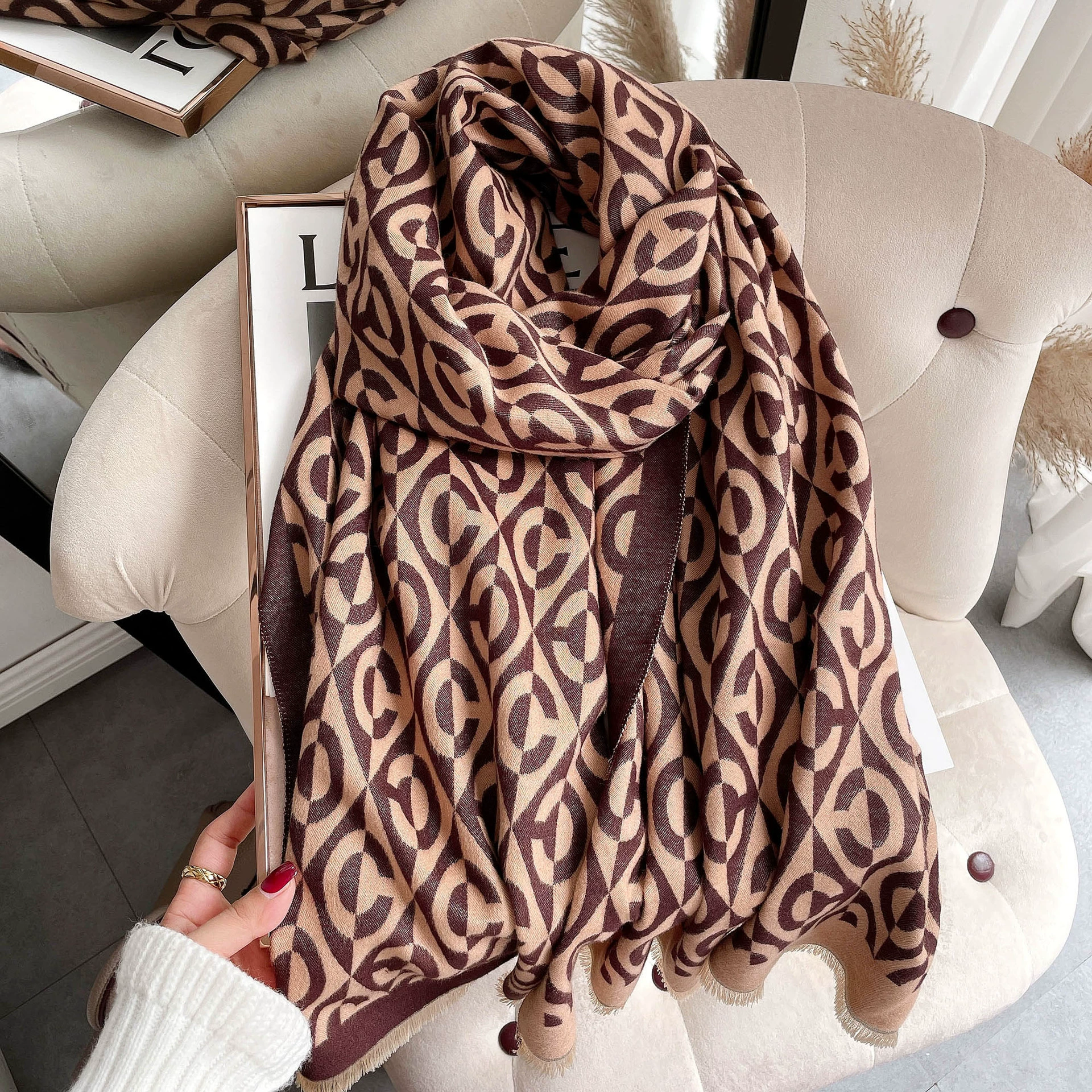 Зимний кашемировый шарф, женские шали с принтом роскошного дизайна,...