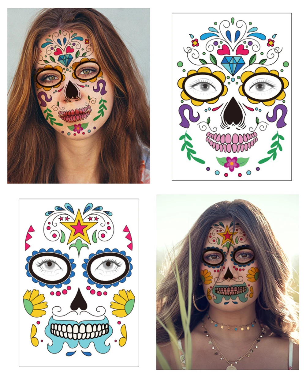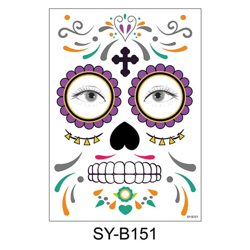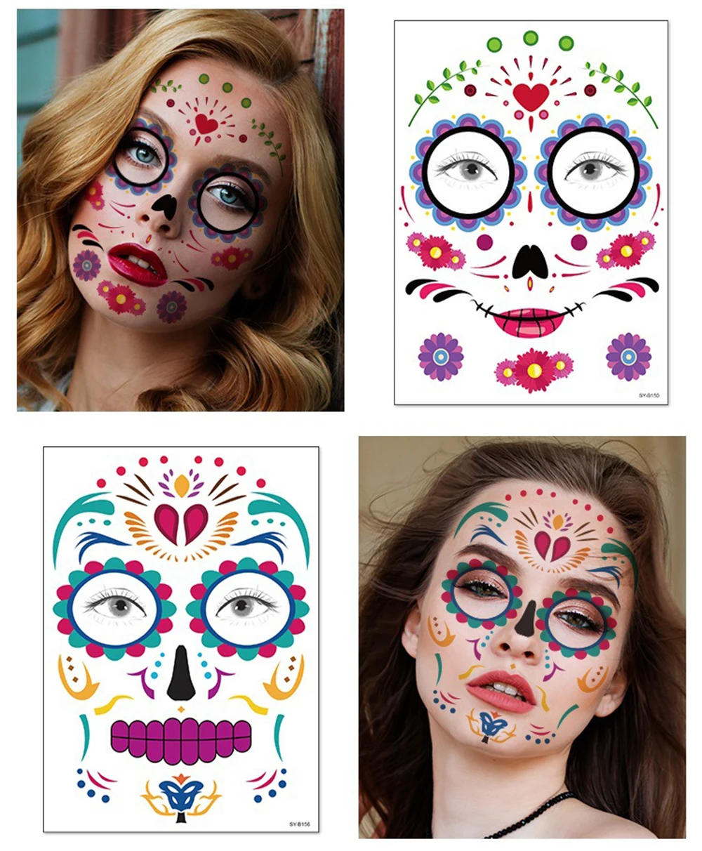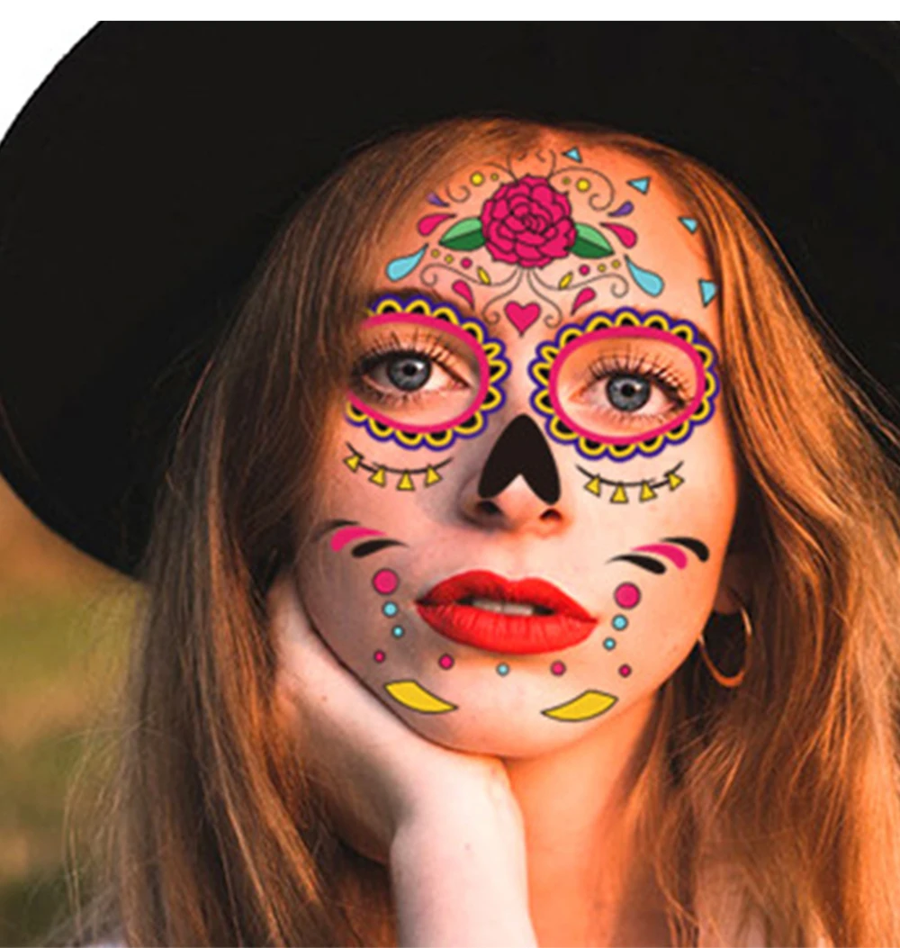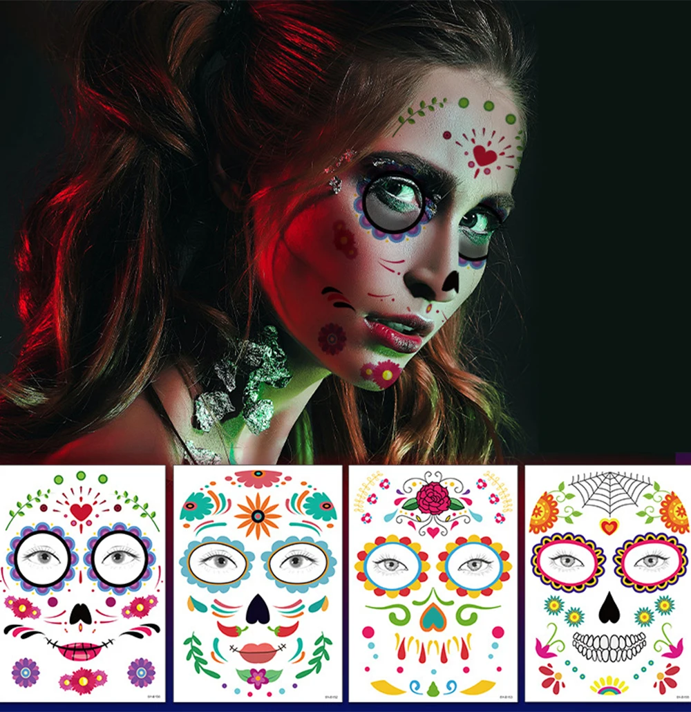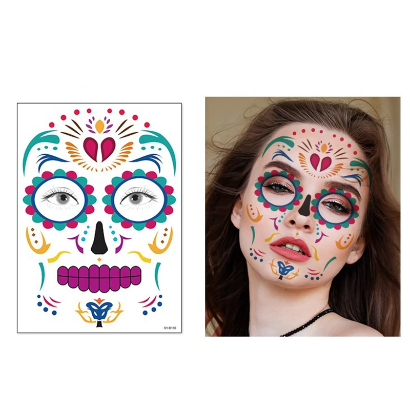 Забавные наклейки для временного макияжа на День мертвых маскарад Хэллоуин тату-наклейки для лица водонепроницаемые