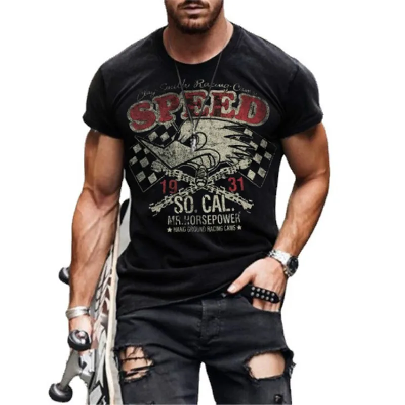 Летняя мужская футболка в американском стиле, уличная мотоциклетная локомотивная одежда 3D, Мужской Свободный Топ большого размера с круглым вырезом