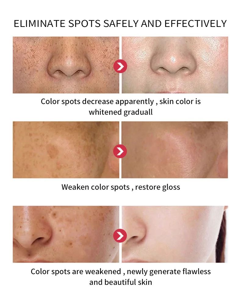 Характеристика:Этот продукт помогает избавиться от морщин и веснушек, устраняя потемнение кожи во время беременности (меласмы), старение и другие пятна и их воздействие. Это также оказывает значительное влияние на лицо молодых людей от акне. Поддерживает высококачественные Генные косметические технологии. Получите более быстрый отбеливающий эффект без каких-либо побочных осложнений. Можно использовать во время беременности и лактации, 100% безопасно