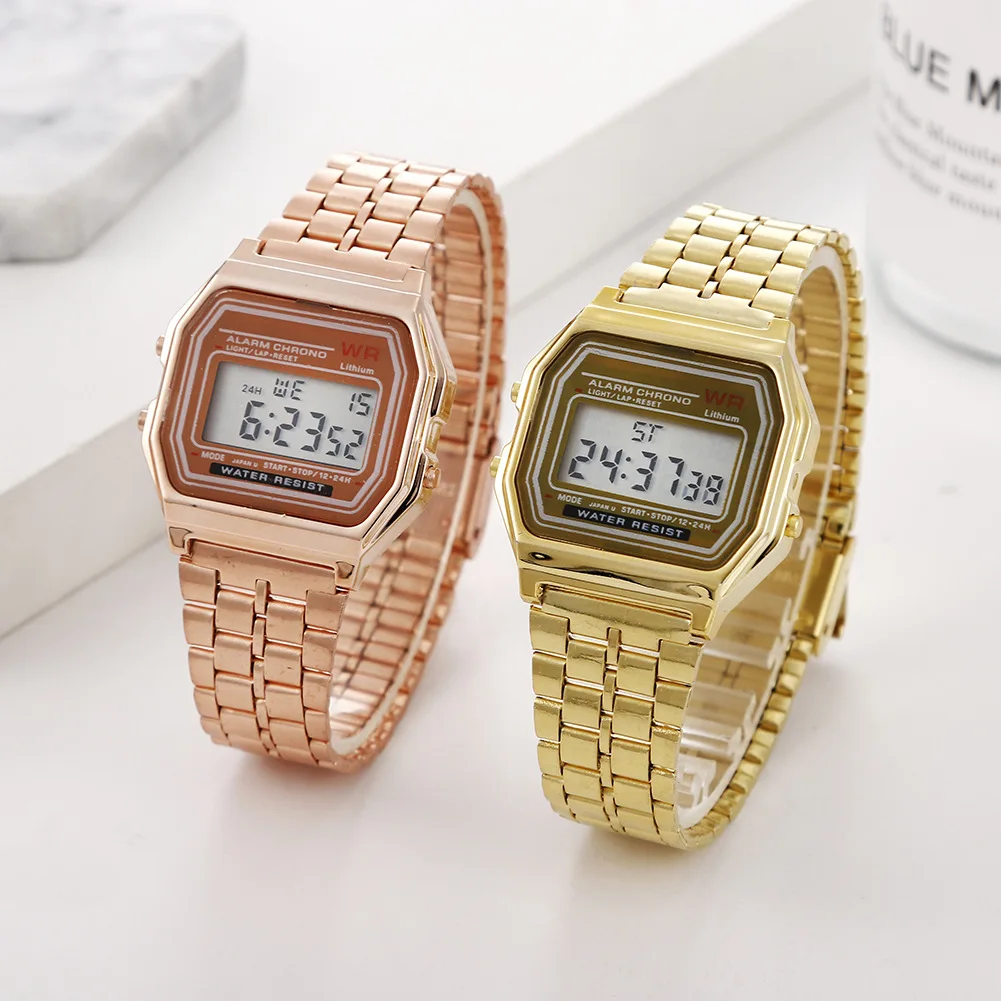 Светодиодные Металлические противоударные спортивные часы для мужчин и женщин, электронные часы с цифровым дисплеем в ретро стиле, мужские часы, мужские часы