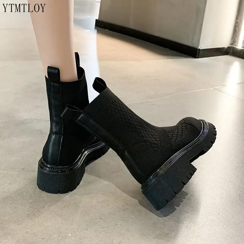 Женские эластичные ботинки-носки, новинка 2021, ботинки мартинсы, м...