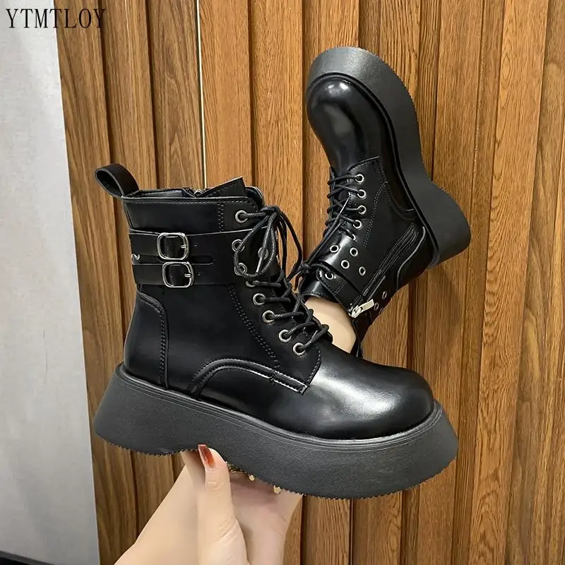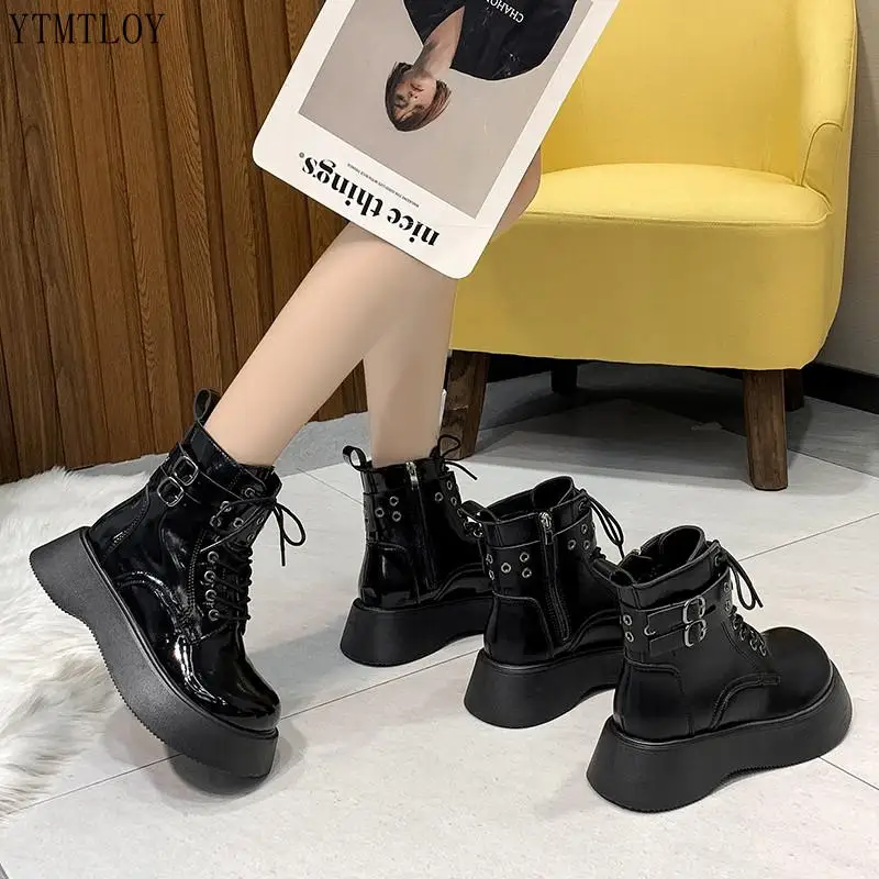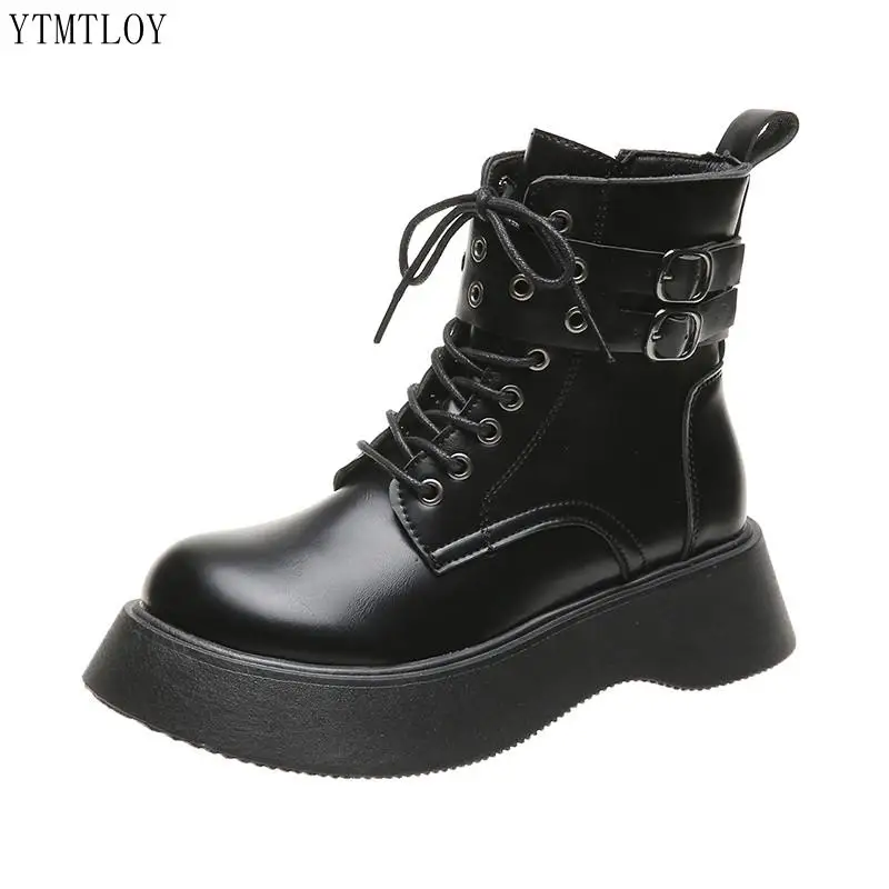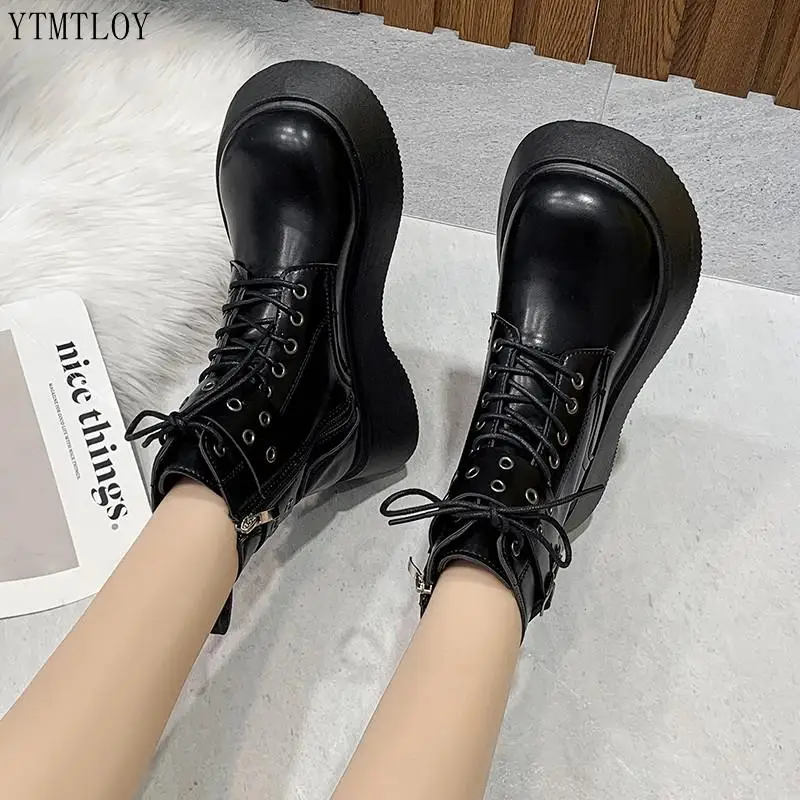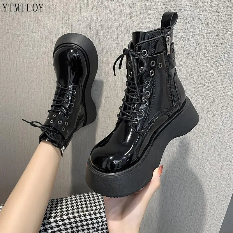 Женские ботинки, новинка 2022, зимняя обувь, обувь на шнуровке, роскошные дизайнерские резиновые ботинки с круглым носком, Модные осенние ботильоны для дам Ytmtloy