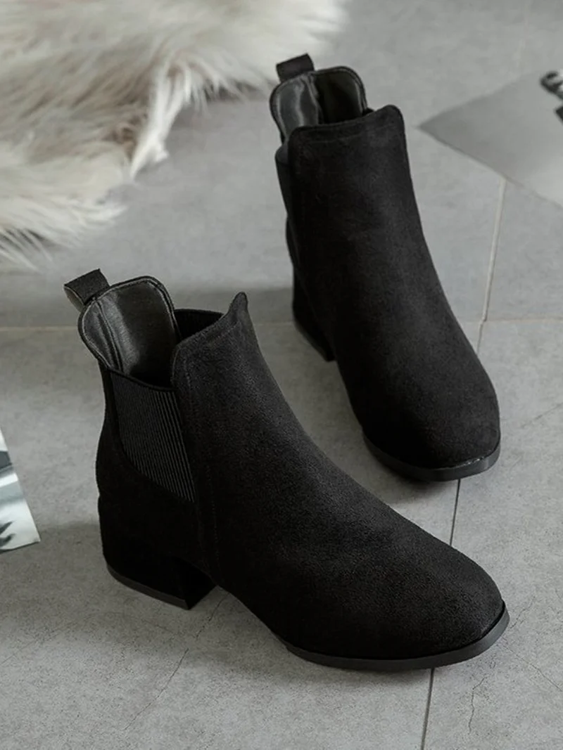 Ботинки женские осенне-зимние верблюжьи, черные, без застежек, на толстом каблуке, 35-40