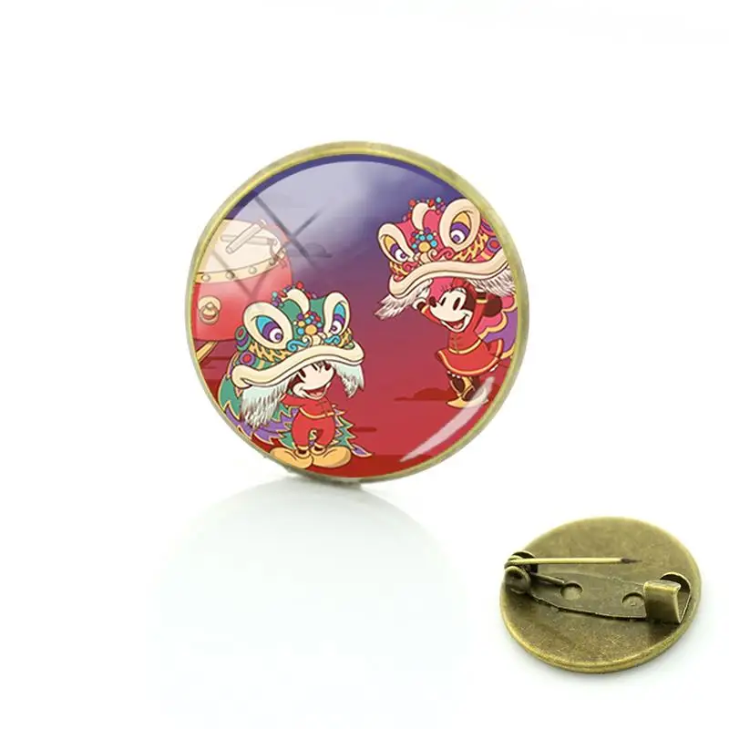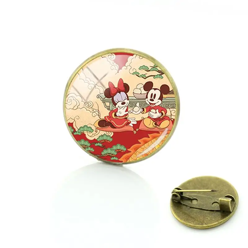 Дисней мультфильм Микки брошь в виде мыши кабошон купол стеклянная булавка брошь мужские и женские аксессуары ювелирные изделияИзображения продуктов: