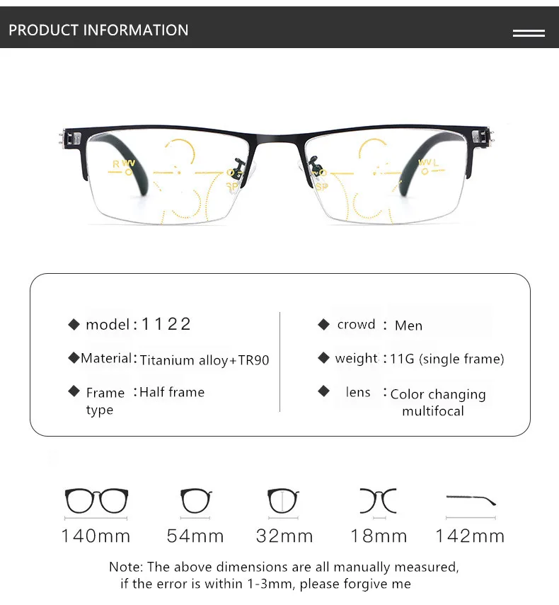 Фотохромные дальние и ближние многофокальные очки для чтения мужски...
