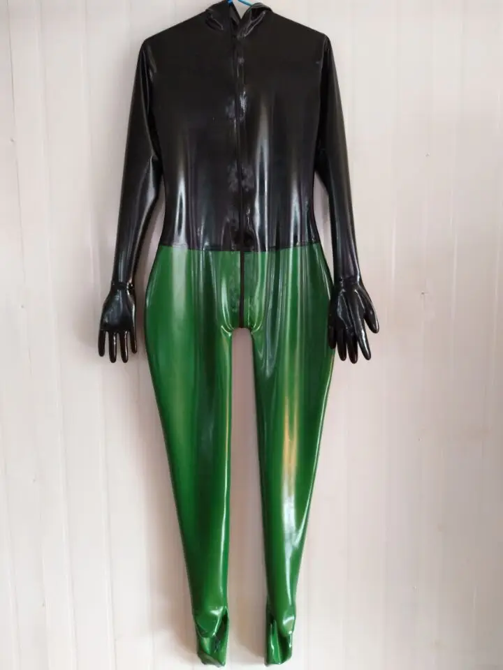Латексный костюм кошки резиновый сексуальный черный и зеленый цвет соответствующий боди, удобный, модный вечерние вечеринки, ролевые игры xs-xxl 0,45 мм