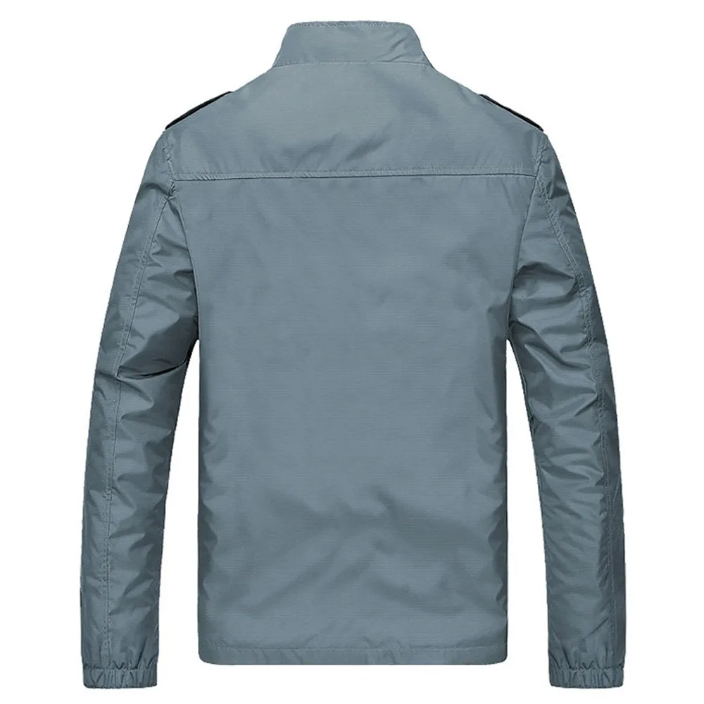 Мужская осенне-зимняя повседневная однотонная куртка на молнии с воротником-стойкой и карманом