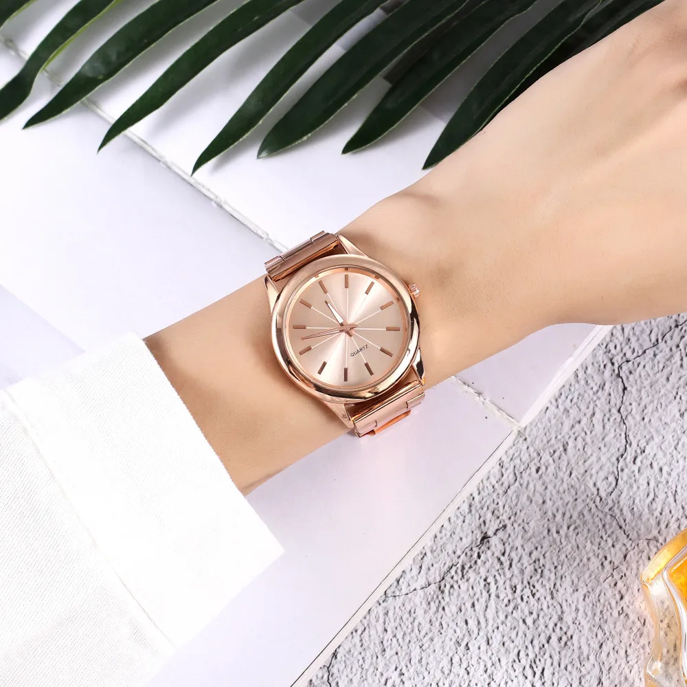 Часы женские аналоговые кварцевые под розовое золото с простым дизайном