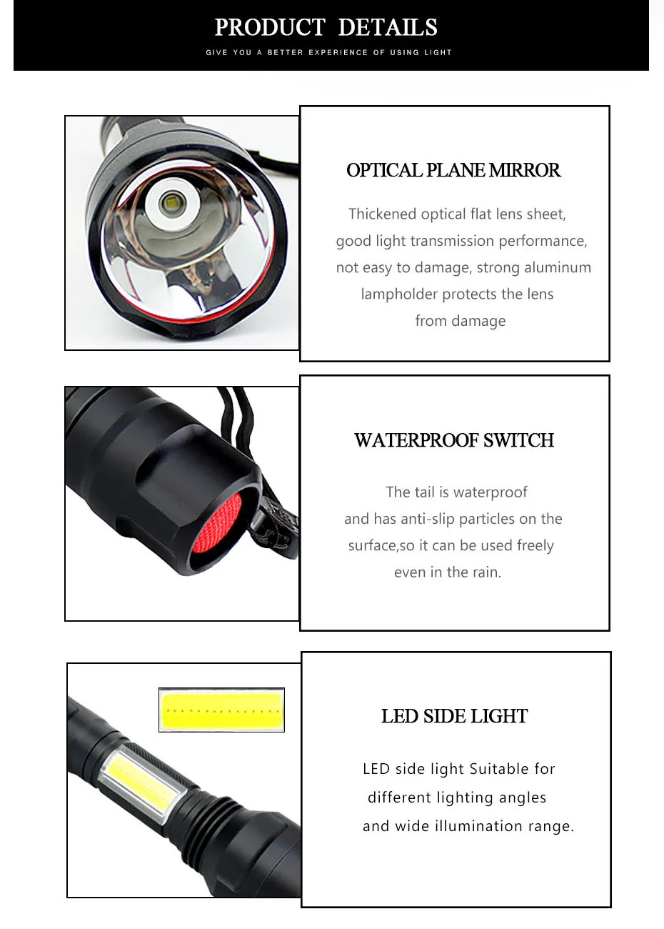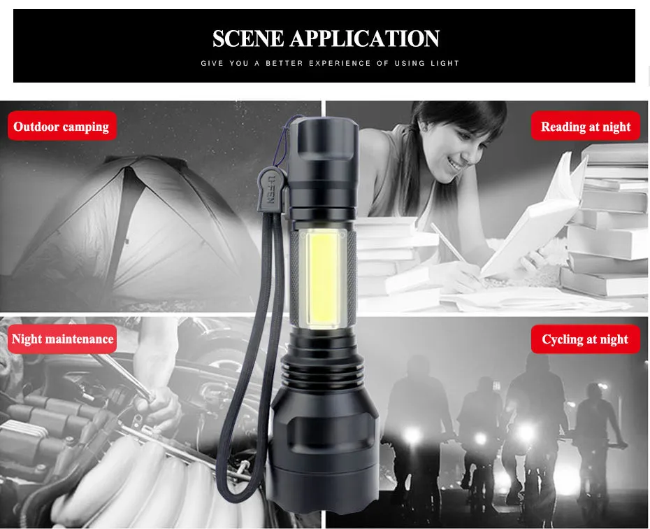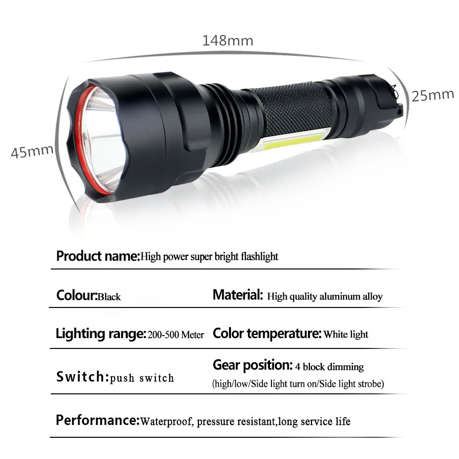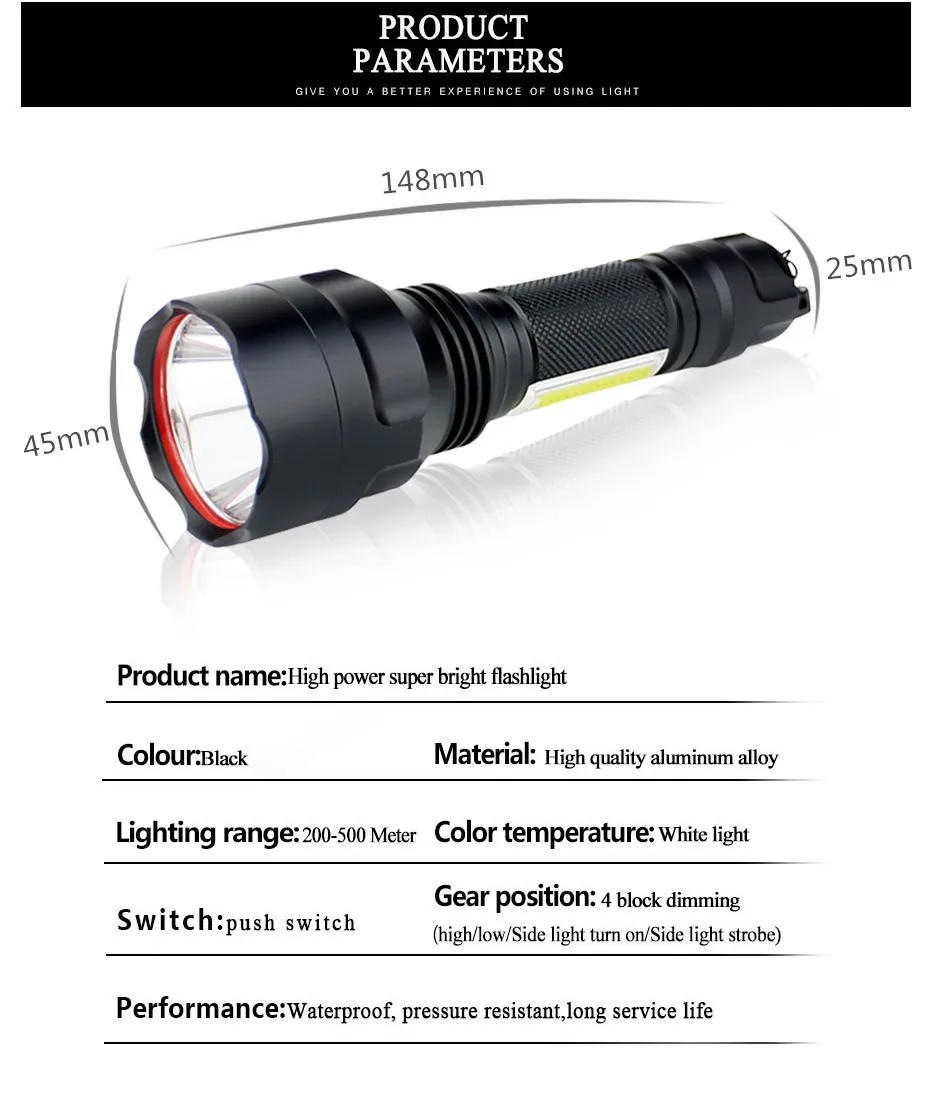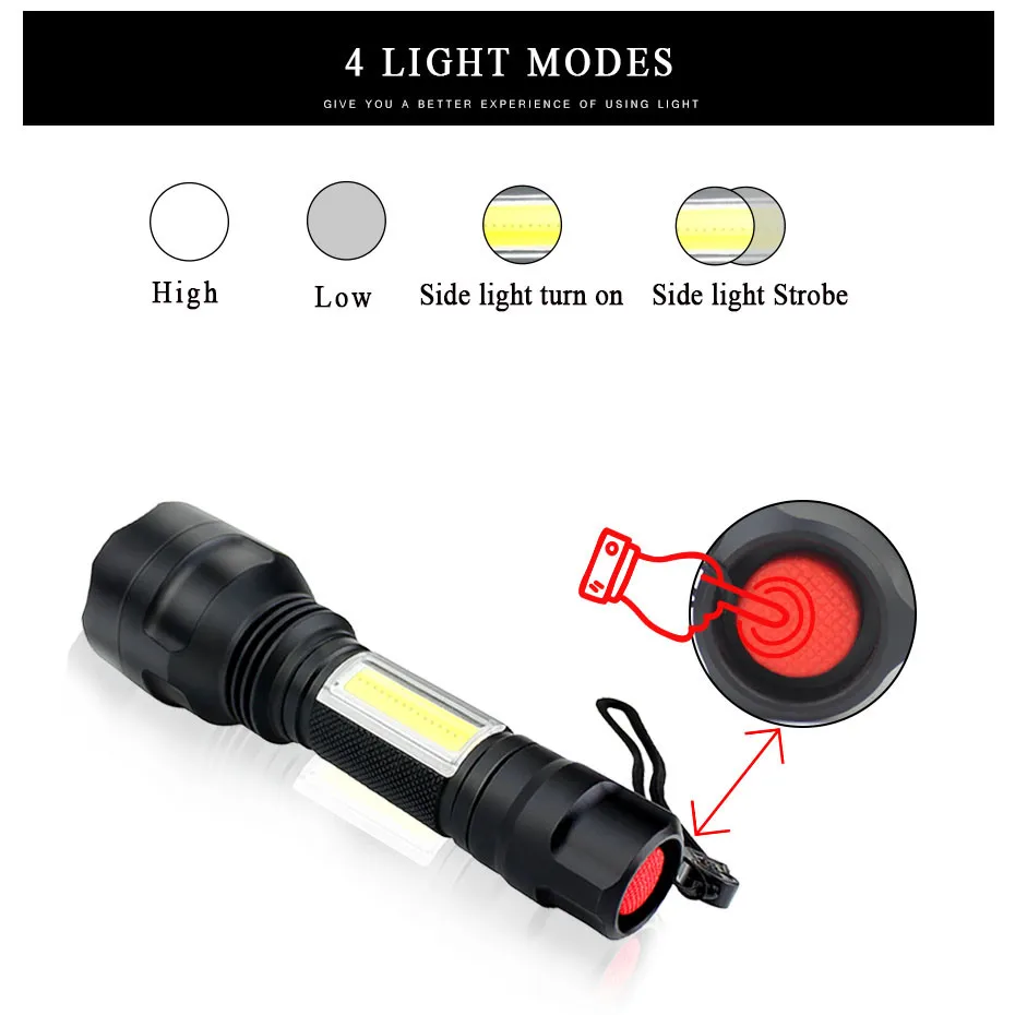 Портативный светодиодный фонарь T6 C8-COB, водонепроницаемый высокомощный тактический фонарь для кемпинга, светильник заряжаемый светодиодный фонарь