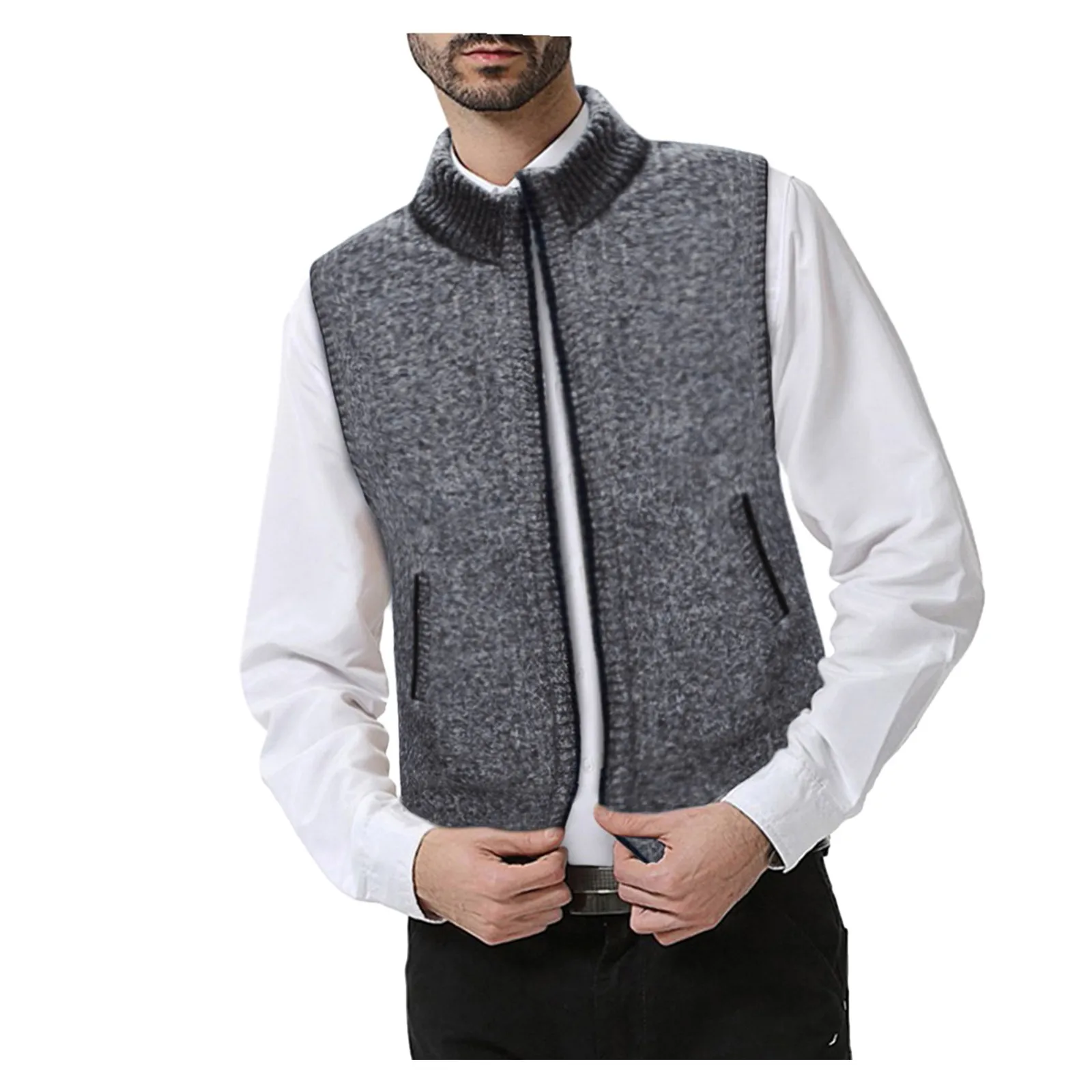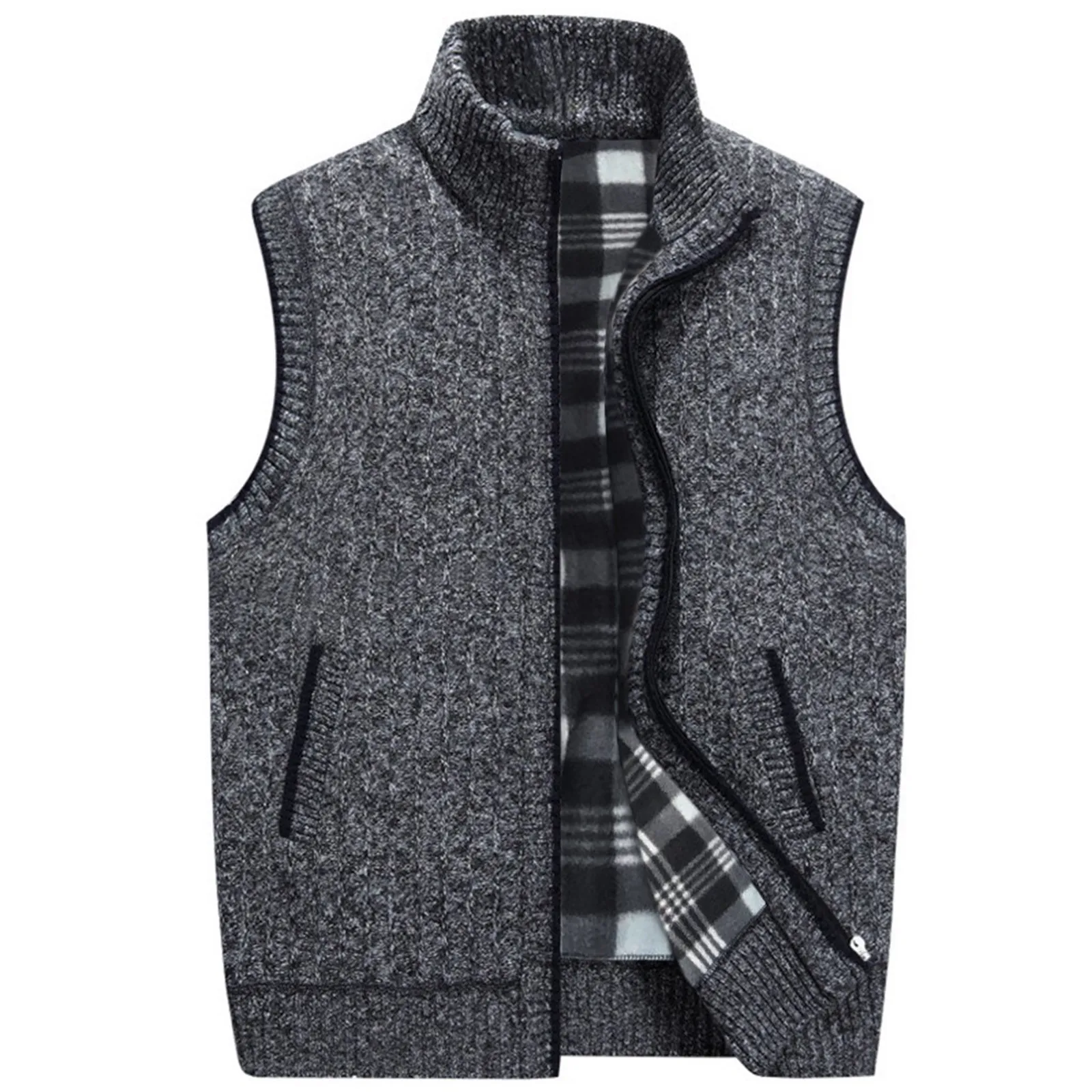 Новый стиль для мужчин, жилет на осень и зиму, чистый флисовый теплый кардиган, блузка, Однотонный свитер, кардиган, жилет без рукавов