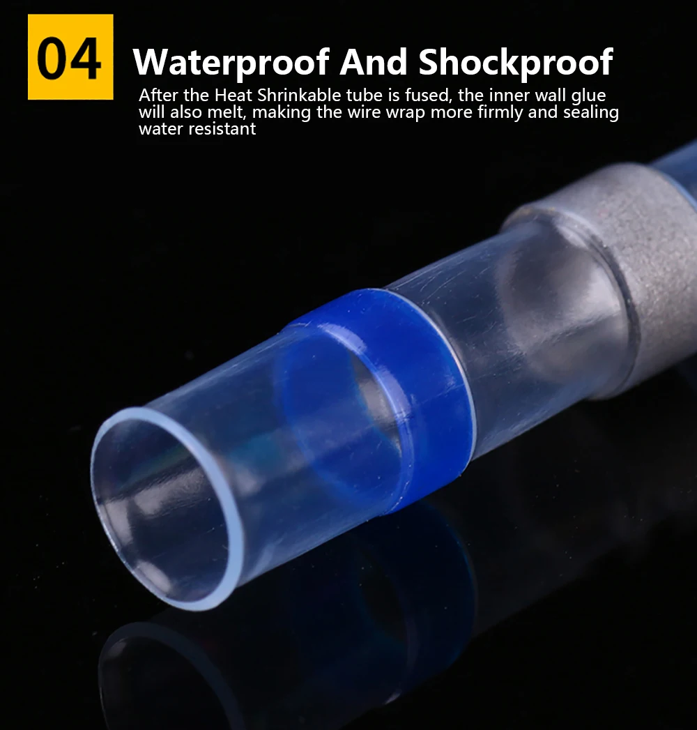 4. Отличное решение проводки для труднодоступных или ограниченных пространств. Поскольку для этих разъемов для припоя не требуется обжима, вы можете легко использовать их в труднодоступных или ограниченных пространственных условиях. Просто поместите зачищенные провода в припой и нанесите тепло, чтобы завершить соединение. Сделайте правильно спаянные и водонепроницаемые соединения менее чем за 30 секунд.