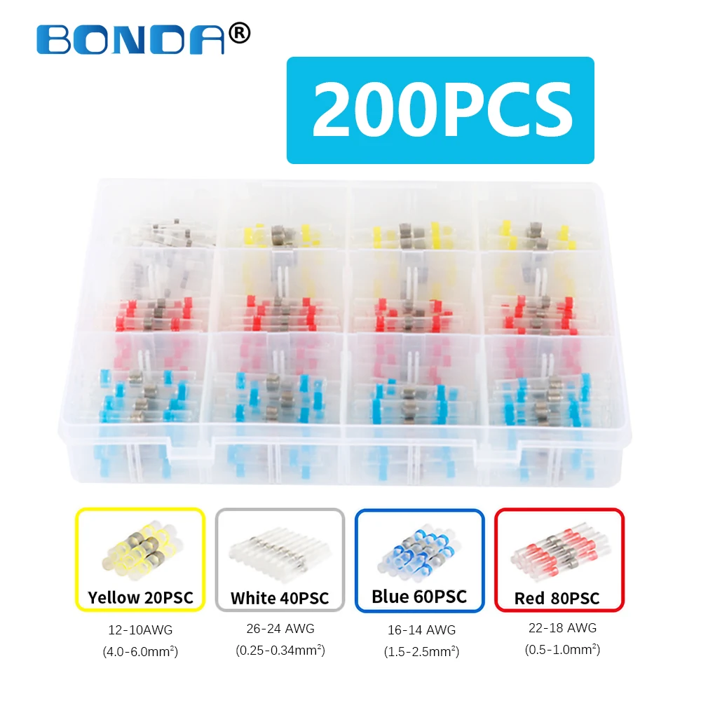 Соединители для проводов с паяльным уплотнением, упаковка в коробку, термоусадочная Водонепроницаемая трубка, электрический провод, автомобильный изолированный комплект стыковых клемм