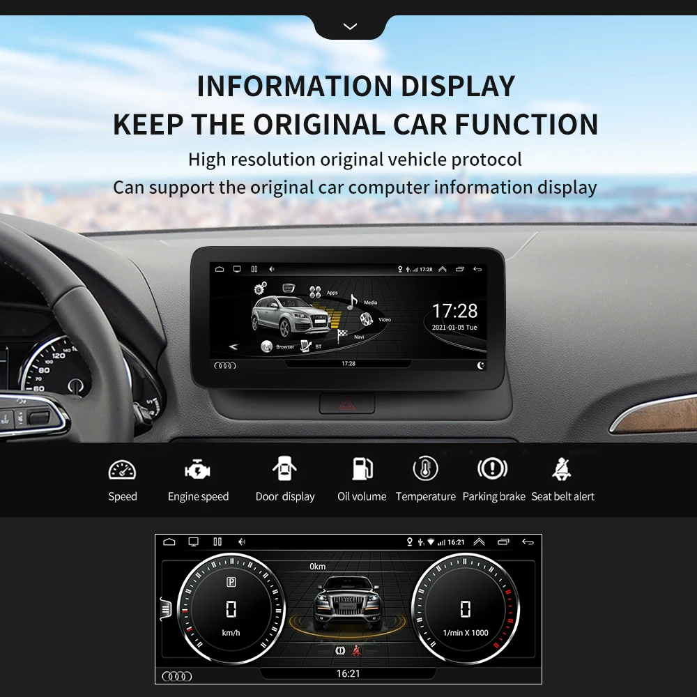 Функция: 8 ядро Процессор процессор/4GB Оперативная память/64GB Встроенная память/GPS Navi / Google/WI-FI/4G сим-карты/BT/Беспроводной Carplay/провода Android Авто/USB/музыка/видео/Разделение экран/Управление рулевым колесом/поддержка задней камеры/Поддержка оригинальной функции автомобиля/быстрая загрузка экрана