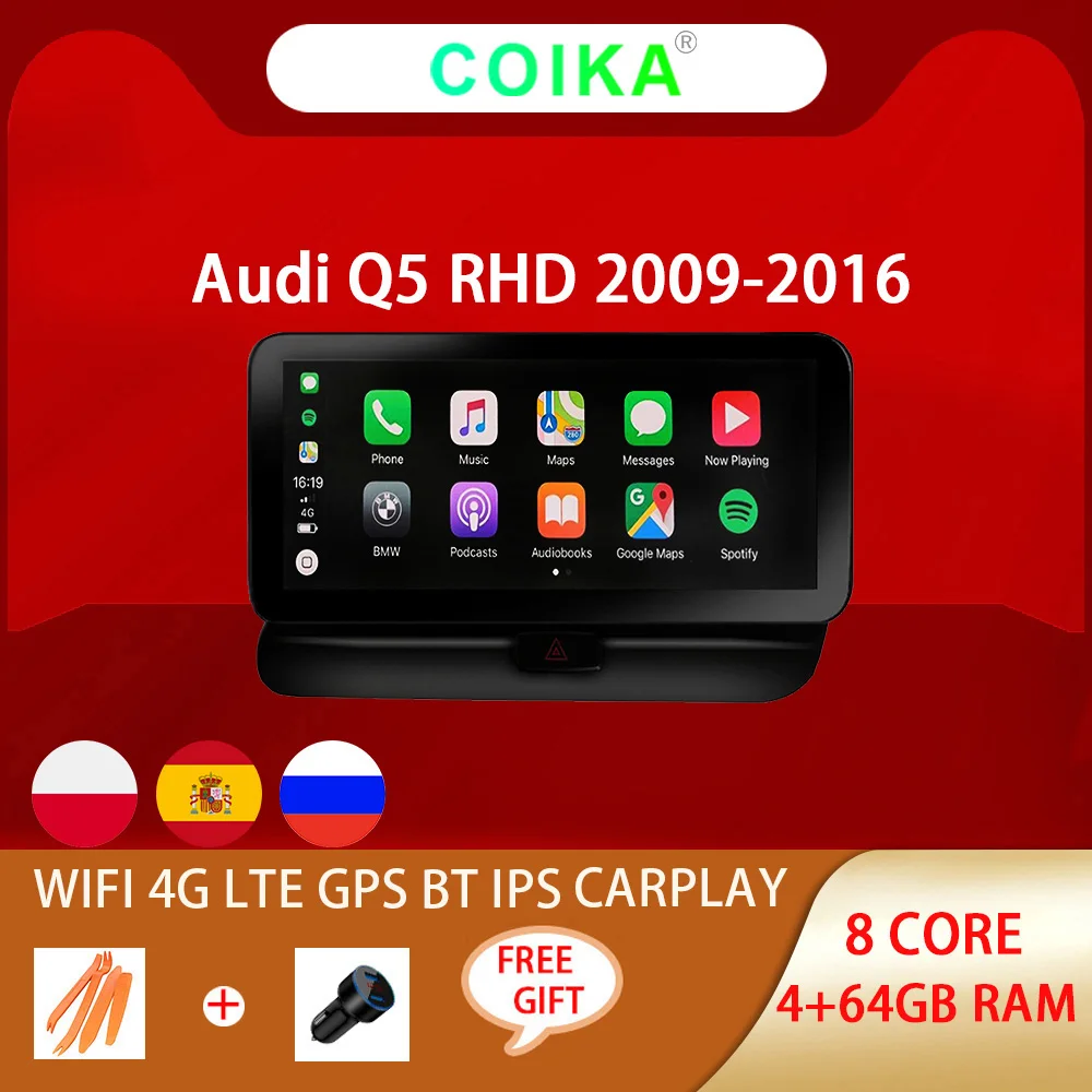 Автомобильная система COIKA, 8 ядер, Android 10, радио-планшет дюйма, для Audi Q5 2009-2016, RHD, 464 Гб ОЗУ, BT IPS экран, мультимедиа, GPS навигатор, приемник