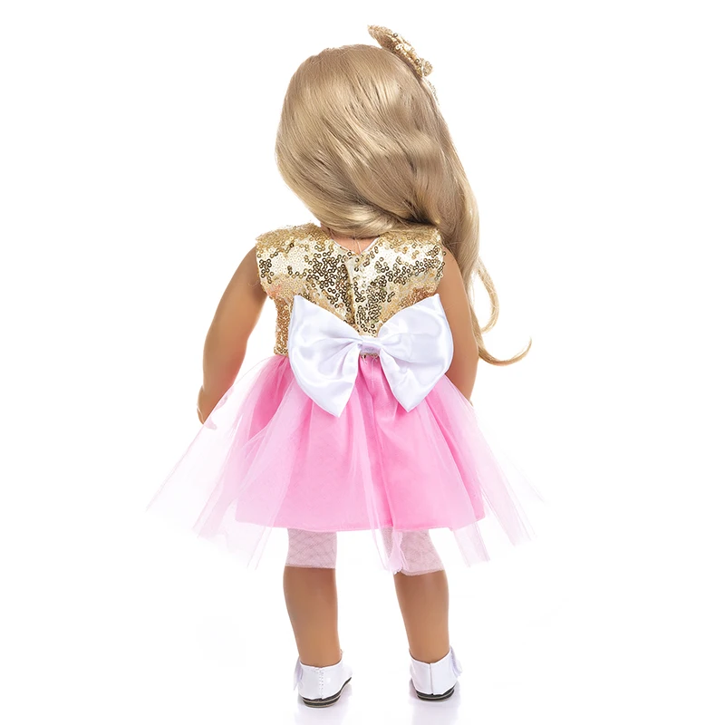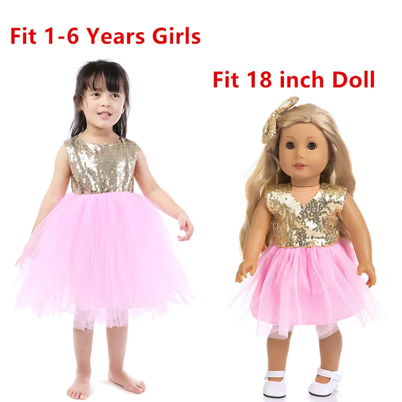 Фабричная модель! Платье принцессы с пайетками для кукол и девочек, подходящее ко всему, одежда для американских кукол 18 дюймов