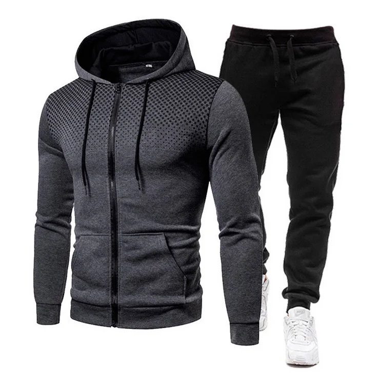 Мужской спортивный костюм с принтом, флисовая толстовка с капюшоном на молнии и брюки
