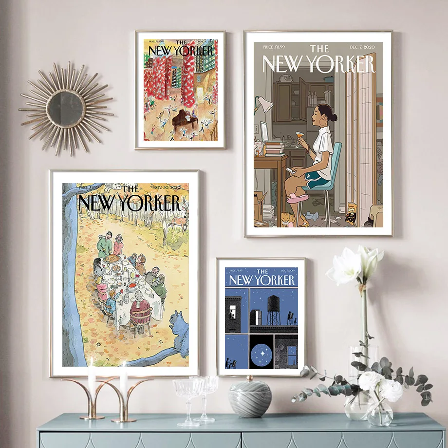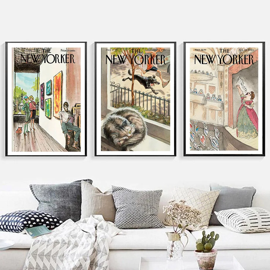 Ретро журнал New Yorker, абстрактная настенная Картина на холсте, с...