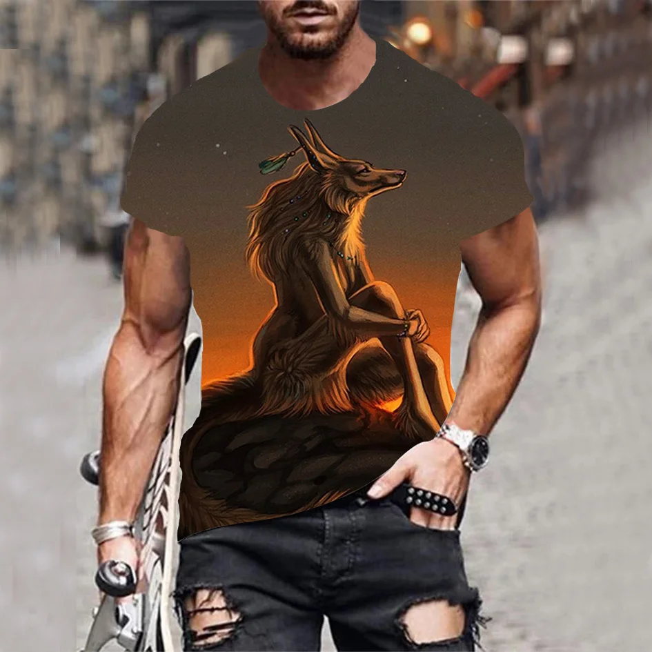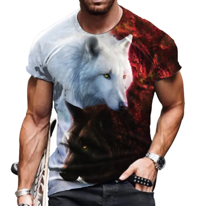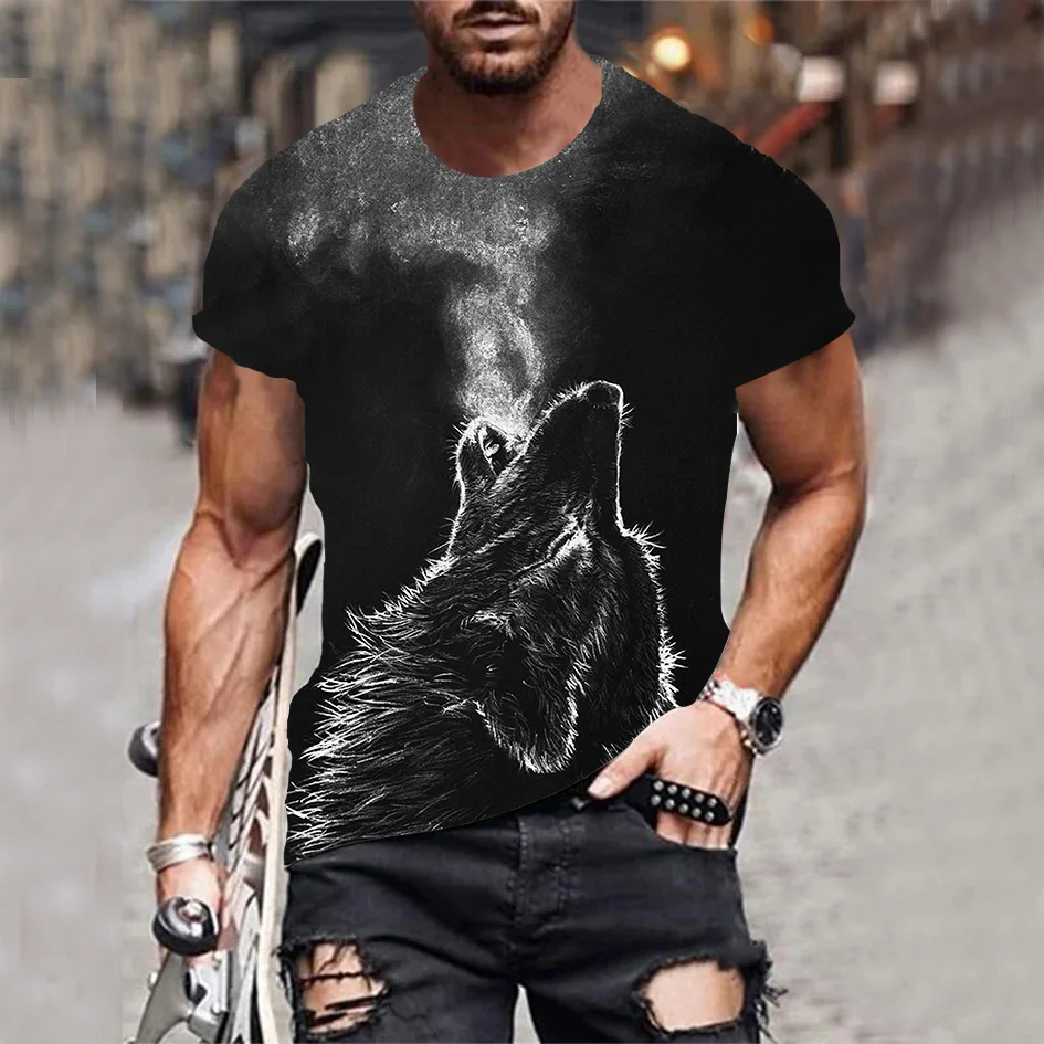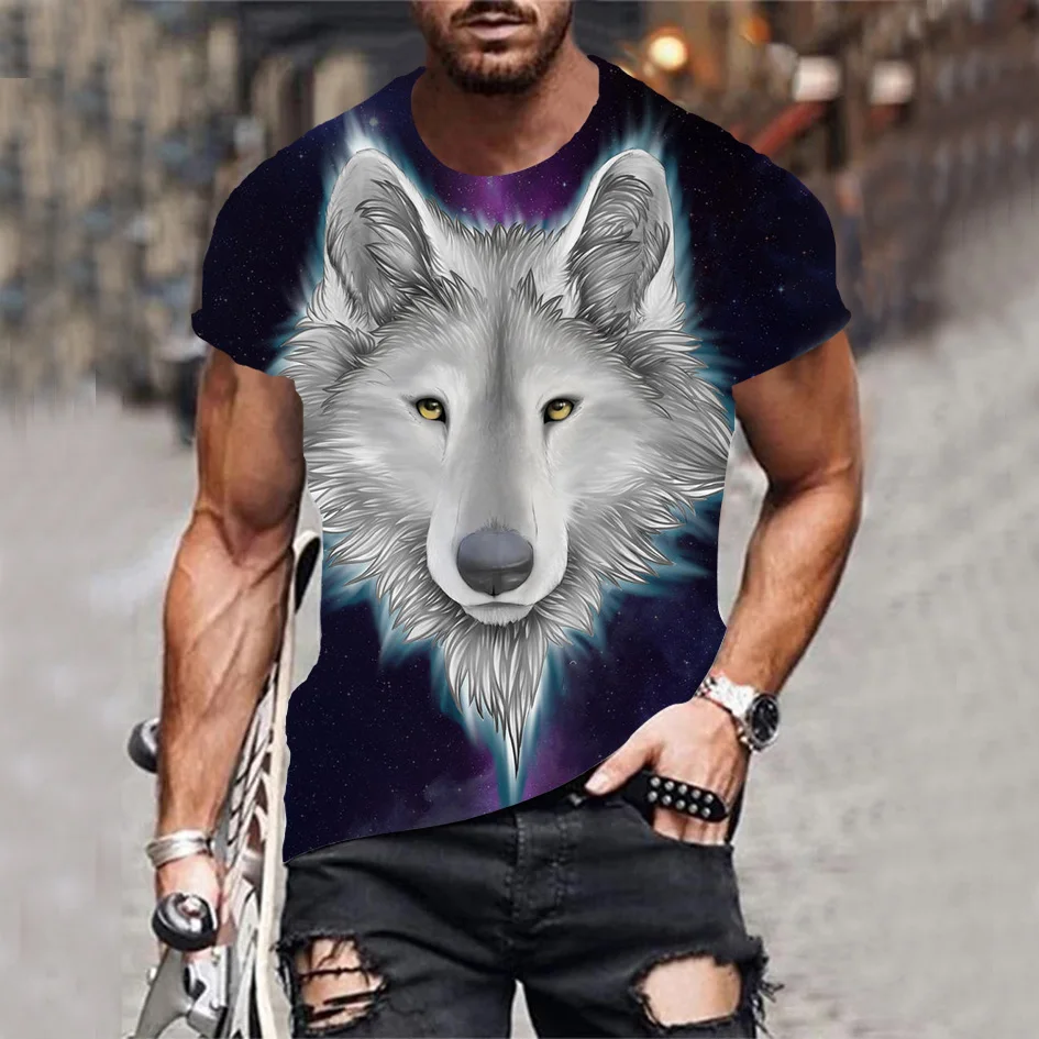 Футболка мужская летняя, дышащая, с 3D-принтом, с волком, XXS-6XL