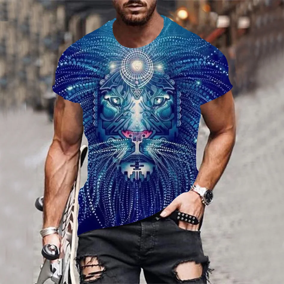 Летняя мужская футболка с изображением льва тигра Топы 3D рубашка с...