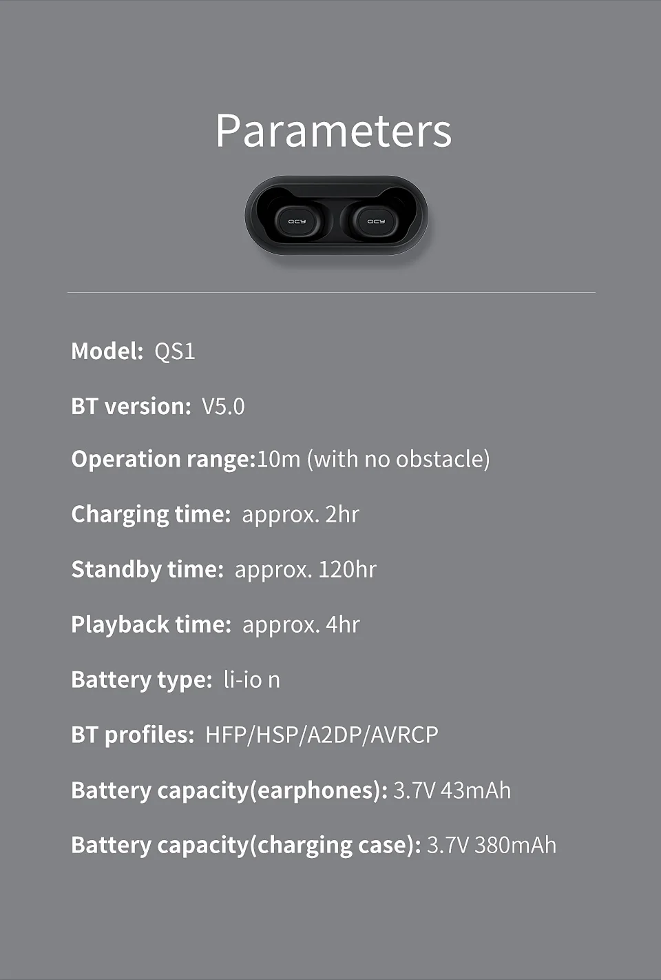 TWS-стереонаушники QCY QS1 T1C с поддержкой Bluetooth 2021 и зарядным футляром