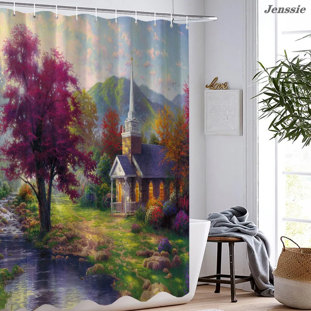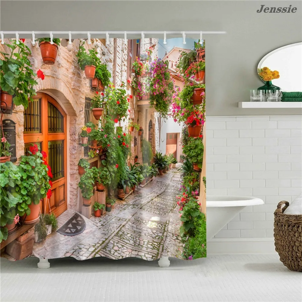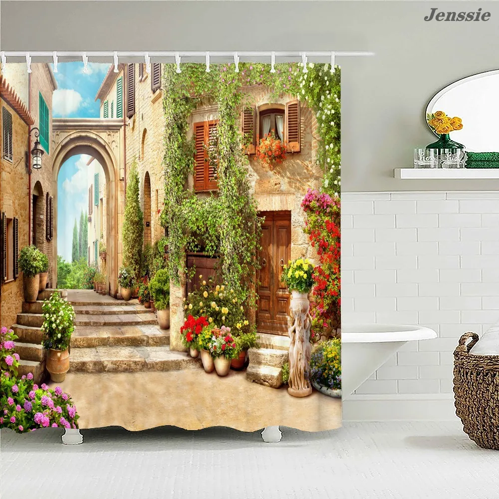 Занавеска для душа с пасторальным пейзажем, 3d занавеска для сада, улицы, леса, полиэстера, для ванной, уличная Водонепроницаемая занавеска для ванной занавеска, водонепроницаемая с крючками