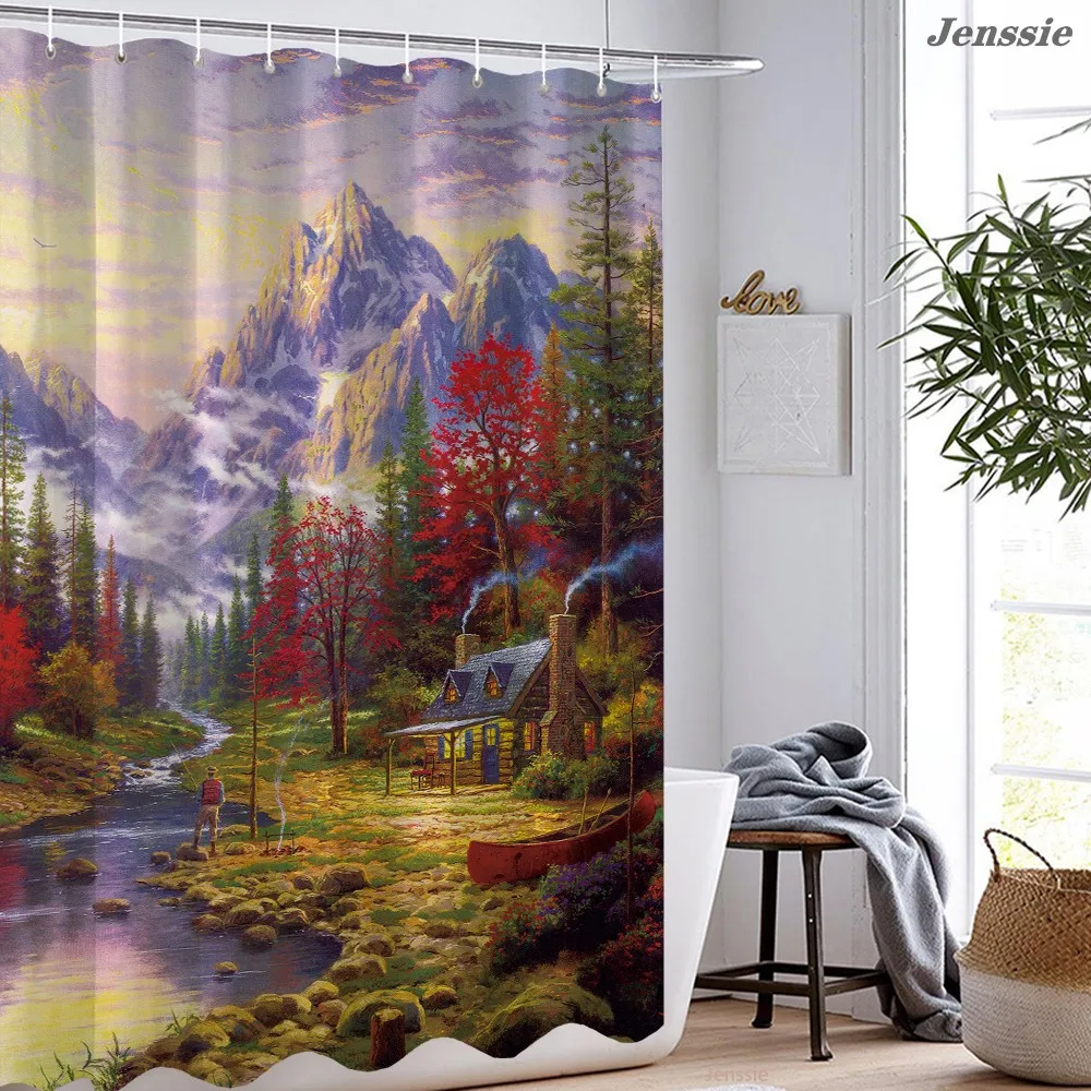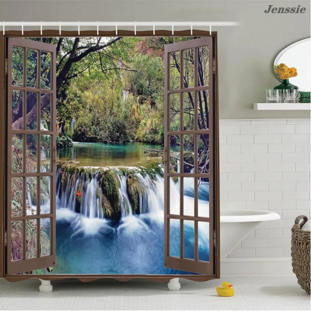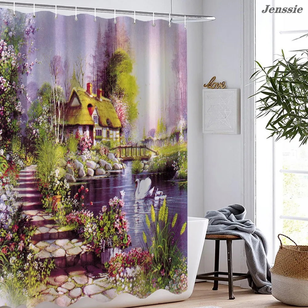 Занавеска для душа, из полиэстера, с пасторальным пейзажем, 3d, для сада, улицы, леса, водонепроницаемая занавеска для ванной, водонепроницаемая, с крючками