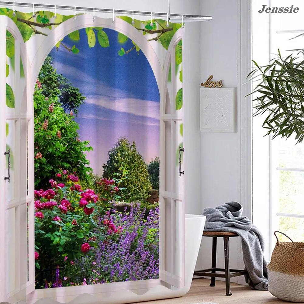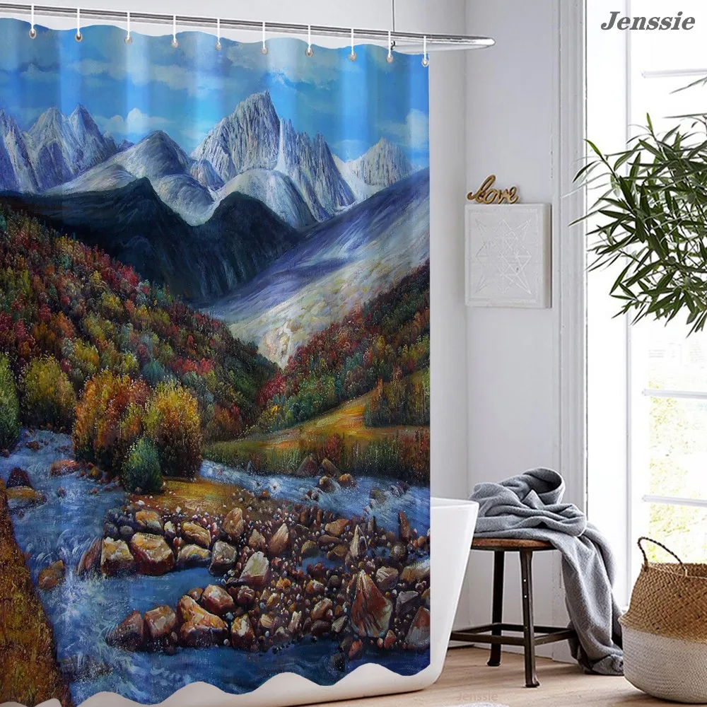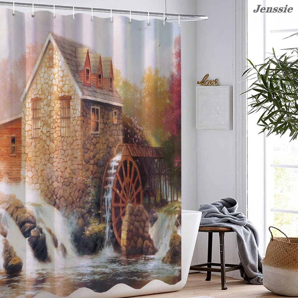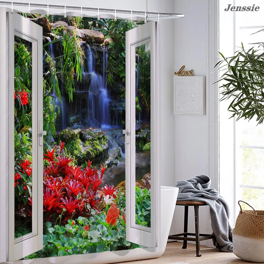 Занавеска для душа, из полиэстера, с пасторальным пейзажем, 3d, для сада, улицы, леса, водонепроницаемая занавеска для ванной, водонепроницаемая, с крючками