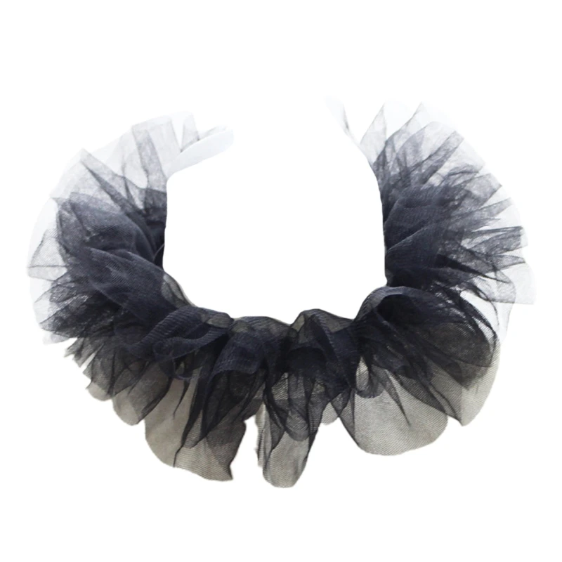 Небольшой воротник из многослойного тюля с оборками, классический черный/белый цвет, регулируемая лента со шнуровкой.