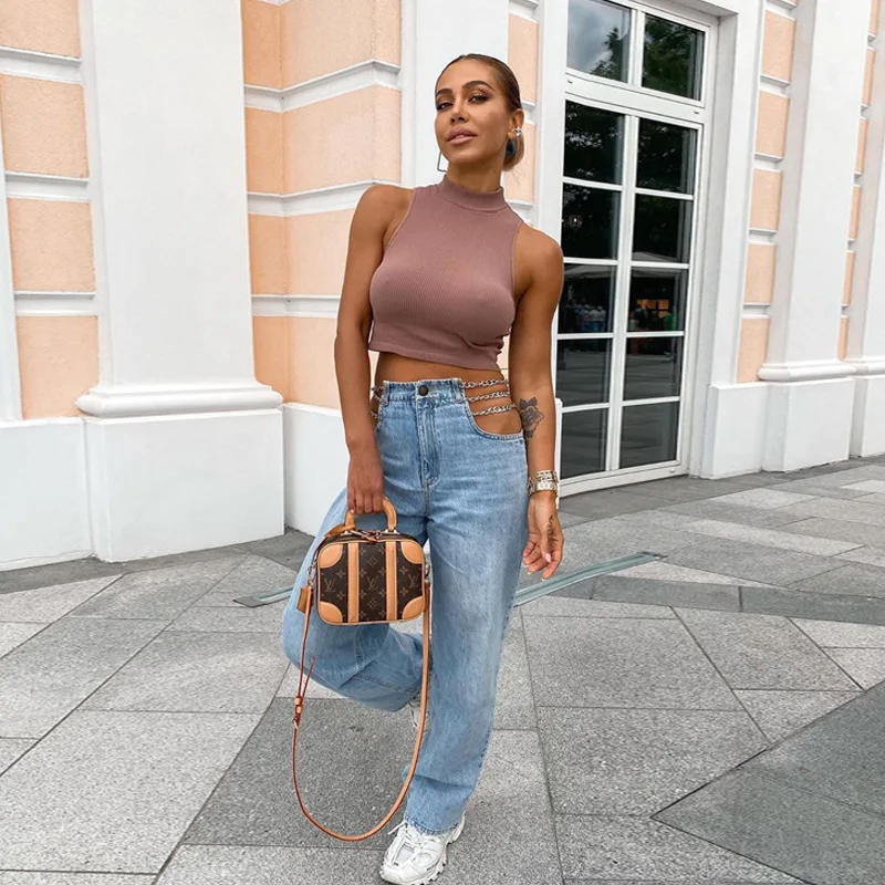 Джинсы женские прямые с низкой посадкой, пикантные элегантные модные брюки из денима с цепочкой, одежда для вечеринки, клуба, Повседневная Уличная одежда, новые брюки